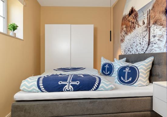 Die Ferienwohnung bietet eine moderne und allergikergeeignete Ausstattung, die höchsten Komfort verspricht. Ein großzügiger Wohn- und Schlafbereich mit einem gemütlichen Sofa und einem Esstisch lädt zum Verweilen ein. Die offene Küche ist voll ausgestattet mit einem Elektro-/Gasherd, Backofen, Mikrowelle, Kühlschrank, Geschirrspüler und verschiedenen Kleingeräten wie einer Kaffeemaschine, einem Toaster und einem Eierkocher, wodurch sich die Zubereitung von Mahlzeiten leicht gestaltet.