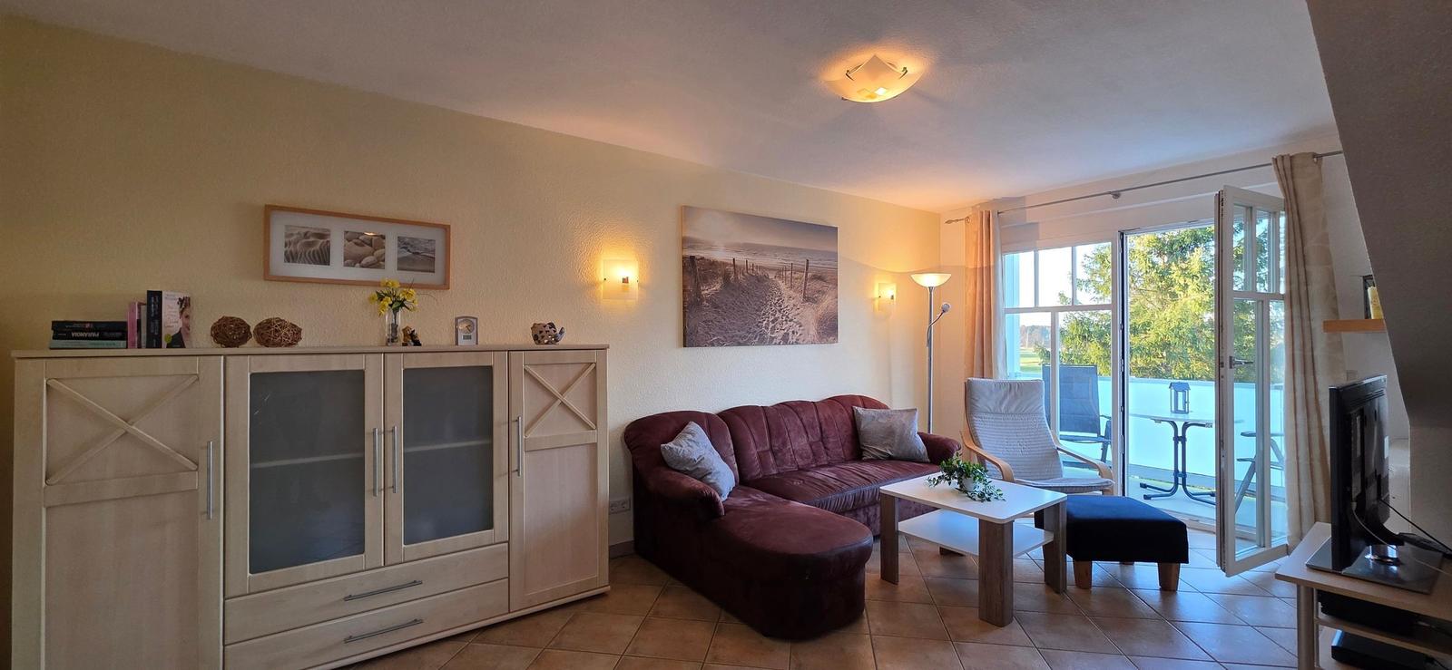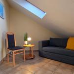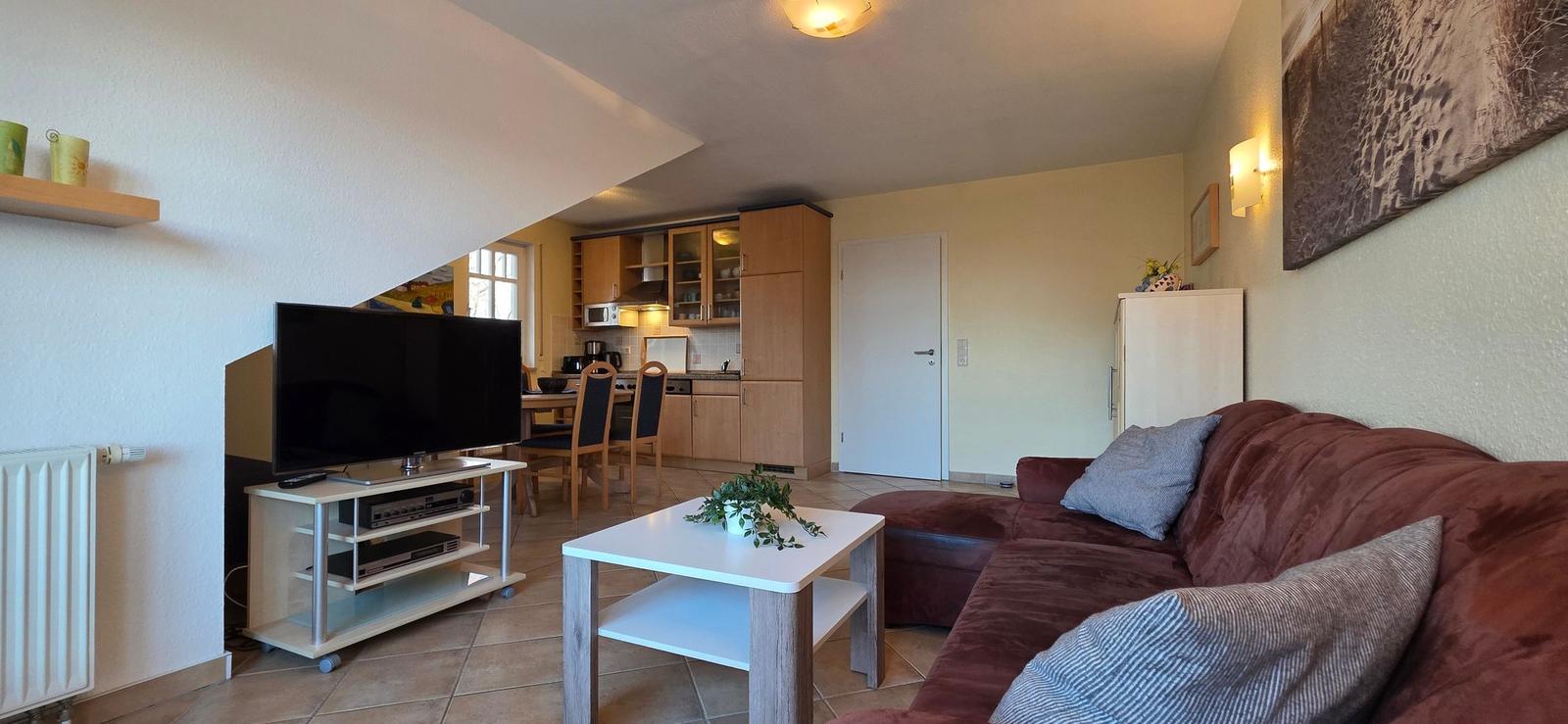 Die Ferienwohnung bietet modernen Komfort auf hohem Niveau. Sie verfügt über ein einladendes Schlafzimmer mit einem Doppelbett sowie ein gemütliches Wohnschlafzimmer, das mit einer praktischen Schlafcouch ausgestattet ist. Die offene Küche lädt zum gemeinsamen Kochen ein und ist mit einem Elektro-/Gasherd, einer Mikrowelle, einem Geschirrspüler, einem Kühlschrank sowie den notwendigen Kleingeräten wie Kaffeemaschine, Toaster und Wasserkocher ausgestattet.