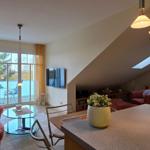 Die Ferienwohnung bietet einen einladenden Rahmen für erholsame Tage. Sie ist allergikergeeignet und verfügt über ein Schlafzimmer mit einem Doppelbett sowie ein Wohnschlafzimmer, das mit einem Einzelbett und einem gemütlichen Sofa ausgestattet ist. Die offene Küche ist ideal für genussvolle Stunden und ist komplett mit einem Geschirrspüler, Elektro-/Gasherd, Backofen, Mikrowelle, Kühlschrank, Kaffeemaschine und Toaster eingerichtet. Im Essbereich findet sich ein einladender Esstisch. Das Badezimmer mit Fenster bietet ein Duschbad und einen Spiegel. Zur zusätzlichen Unterhaltung stehen eine HiFi-Anlage und ein TV zur Verfügung. Die Wohnung ist mit einer Heizung und Rauchmeldern ausgestattet, um für Sicherheit und Komfort zu sorgen. Fahrräder sind ebenfalls vorhanden, um die Umgebung zu erkunden. Diese Ferienwohnung eignet sich perfekt für einen entspannenden Aufenthalt.