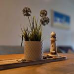 Die Ferienwohnung bietet ein komfortables und allergikergeeignetes Ambiente, ideal für einen entspannten Aufenthalt. Sie umfasst ein Schlafzimmer mit einem Doppelbett sowie ein Wohnschlafzimmer mit einer praktischen Schlafcouch. Die offene Küche lässt keine Wünsche offen: Sie ist ausgestattet mit einem Elektro-/Gasherd, Backofen, Geschirrspüler, Kühlschrank und einer Kaffeemaschine. Ein Toaster und Wasserkocher runden das Angebot ab. Der Esstisch bietet ausreichend Platz für gesellige Mahlzeiten. Das Badezimmer verfügt über eine moderne Duschbad-Ausstattung. In der Wohnung sorgen eine HiFi-Anlage und ein TV für Unterhaltung, während die Heizung an kühleren Tagen für ein angenehmes Raumklima sorgt. Eine Waschmaschine ist ebenfalls vorhanden, was den Aufenthalt besonders komfortabel gestaltet. Die Räume zeichnen sich durch eine geschmackvolle Einrichtung aus, die sowohl Gemütlichkeit als auch Praktikabilität vereint.