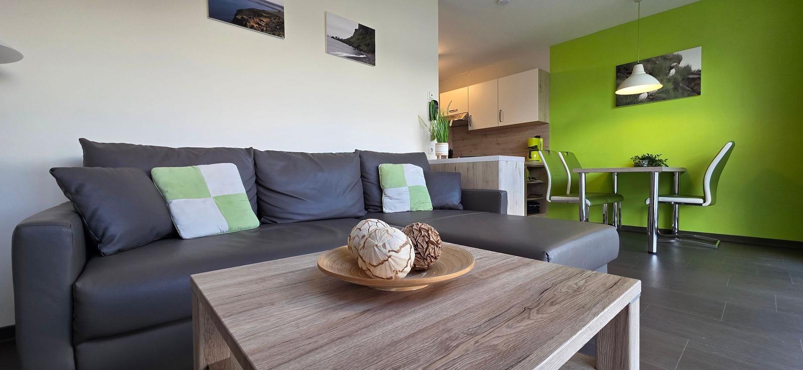 Die Ferienwohnung bietet eine komfortable und allergikergeeignete Unterkunft für erholsame Tage. Im einladenden Schlafzimmer befinden sich ein Doppelbett sowie ein Einzelbett, ideal für Paare oder kleine Familien. Das moderne Badezimmer ist mit einer Dusche, Haartrockner und Fußbodenheizung ausgestattet und sorgt für wärmende Momente.