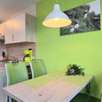 Die offene Küche, ausgestattet mit Elektro-/Gasherd, Backofen, Geschirrspüler, Kühlschrank und Gefriermöglichkeit, lädt zu kulinarischen Kreationen ein. Eine Kaffeemaschine, Wasserkocher und Toaster komplettieren die Ausstattung.