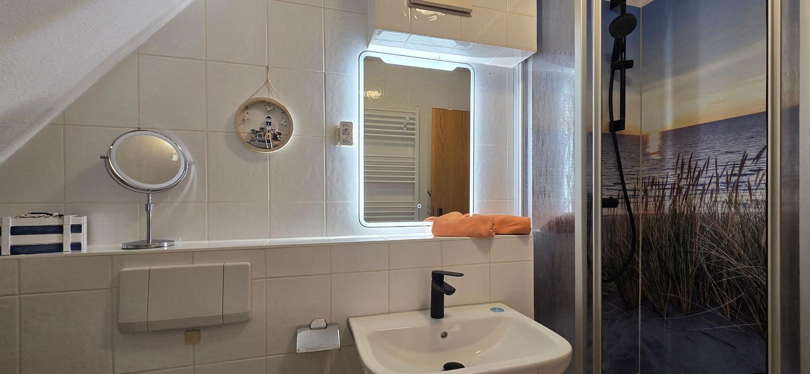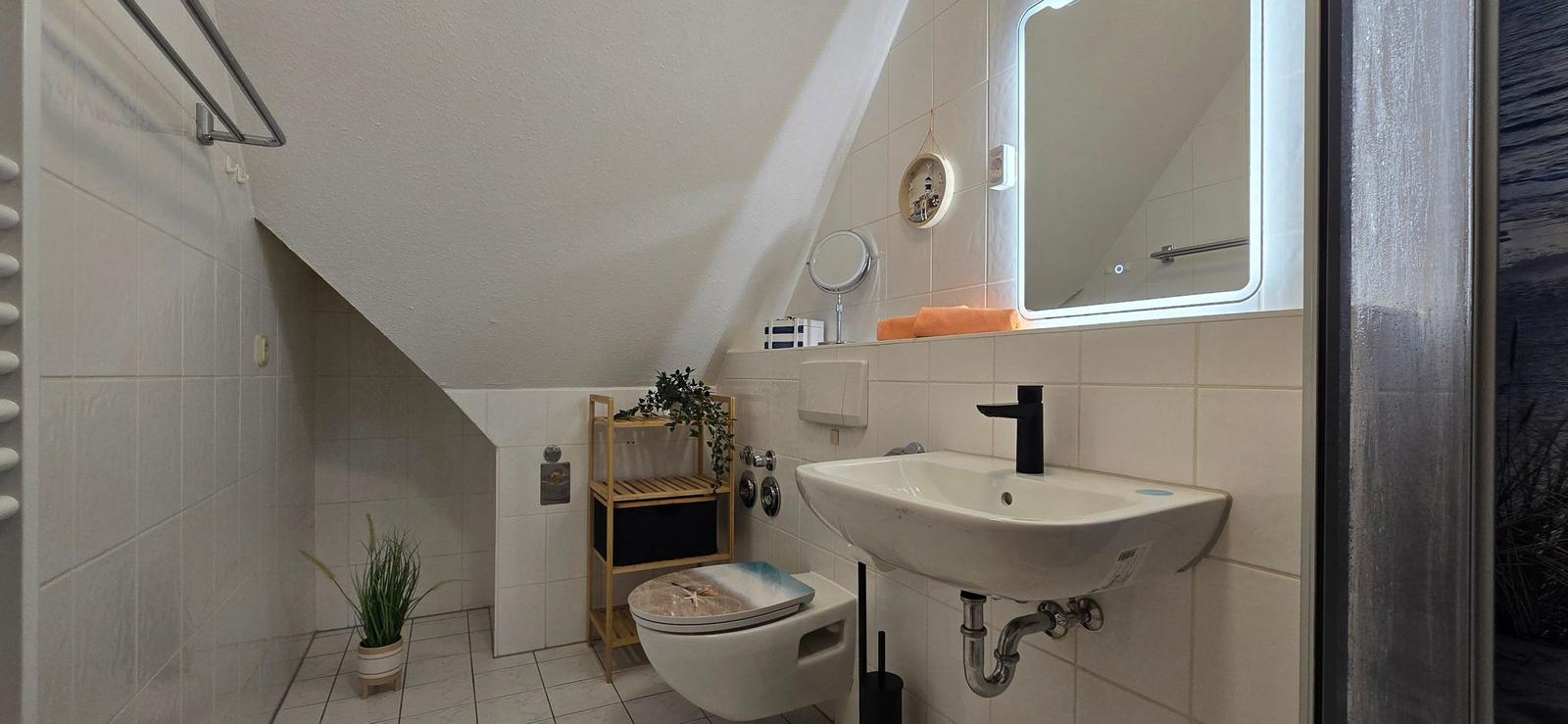 Die Ferienwohnung überzeugt durch ihre moderne Ausstattung und das durchdachte Raumkonzept. Ein lichtdurchflutetes Schlafzimmer mit einem komfortablen Doppelbett bietet eine ruhige Rückzugsmöglichkeit. Die offene Küche ist ideal für Selbstversorger und sorgt mit ihrem Elektro-/Gasherd, Backofen, Geschirrspüler, Mikrowelle und Kühlschrank für kulinarische Erlebnisse. Eine Kaffeemaschine, ein Toaster und eine Gefriermöglichkeit runden das Angebot ab. Das Badezimmer ist mit einem Duschbad und einem Haartrockner ausgestattet, um den täglichen Komfort zu gewährleisten. Zur Unterhaltung stehen eine HiFi-Anlage und ein TV bereit. Die Ferienwohnung ist allergikergeeignet und bietet durch die vorhandene Heizung eine angenehme Atmosphäre zu jeder Jahreszeit. WLAN-Internet ermöglicht zudem eine durchgehende Verbindung. Rauchen ist in der Wohnung nicht gestattet, und ein Rauchmelder sorgt für zusätzliche Sicherheit. Die gesamte Ausstattung trägt zu einem angenehmen Aufenthalt bei.