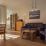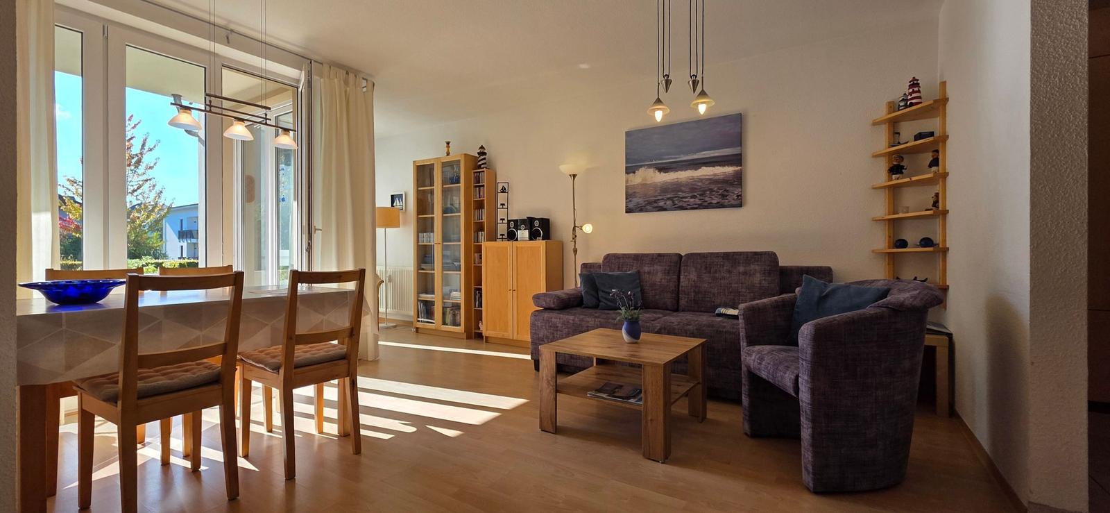 Die Ferienwohnung L17 – Wellenkieker in Graal-Müritz bietet auf 57 m² komfortablen Raum für bis zu vier Personen. Sie umfasst zwei Schlafzimmer, von denen eines mit einem Doppelbett (180 cm x 200 cm, geteilte Matratze) ausgestattet ist, während das andere zwei Einzelbetten bereithält. Der offene Wohn- und Küchenbereich ist modern gestaltet und verfügt über eine voll ausgestattete Küche mit Herd, Backofen, Mikrowelle, Spülmaschine, Kühlschrank mit Gefrierfach sowie Wasserkocher, Toaster und Kaffeemaschine. Der Wohnbereich bietet Sofa, TV und Radio. Das Badezimmer ist mit einer Dusche, WC, Waschbecken sowie einem Haartrockner ausgestattet. WLAN steht zur Verfügung, und die Wohnung ist durch Zentralheizung angenehm temperiert. Ein möblierter Balkon mit Sonnenschirm und ein Parkplatz in der Tiefgarage sind ebenfalls vorhanden. Haustiere sind erlaubt. Ein Aufzug im Haus erleichtert den Zugang. Bettwäsche und Handtücher können zusätzlich gebucht werden.