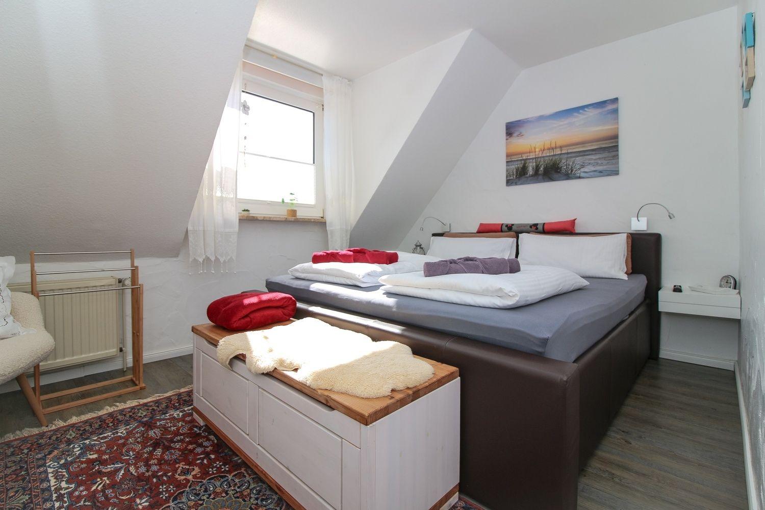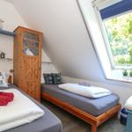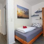 Mit zwei Schlafzimmern ist bei uns genug Platz. Das große Schlafzimmer ist zusätzlich mit einem TV und einer Leseecke ausgestattet. Der große Kleiderschrank bietet Ihnen ausreichend Platz. Das kleine Schlafzimmer verfügt über 2 Einzelbetten, Kleiderschrank und Kommode.