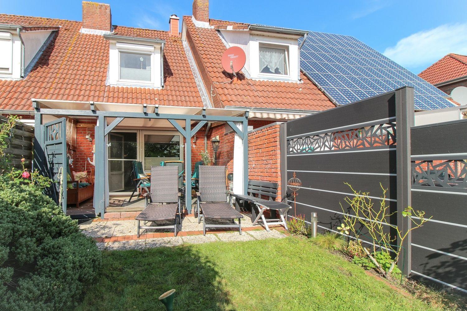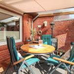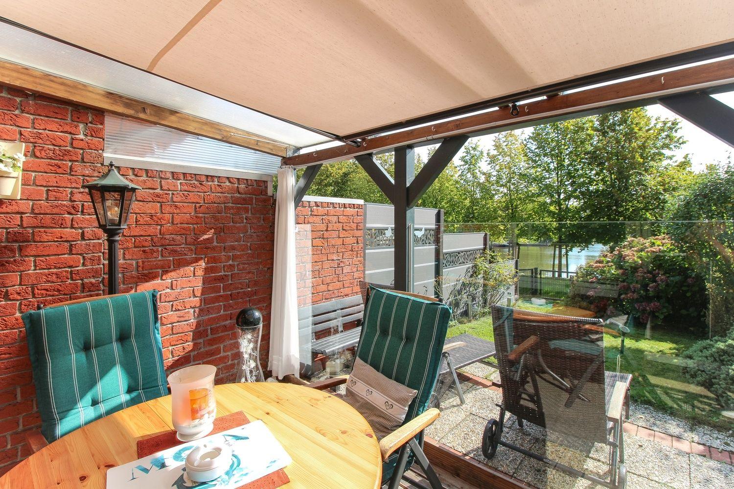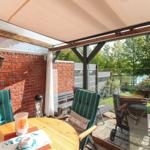 Von der überdachten und windgeschützten Terrasse haben Sie einen schönen Blick auf die neuen Greetsieler-Grachten und können hier den Tag zu einem wunderschönen Abend werden lassen.