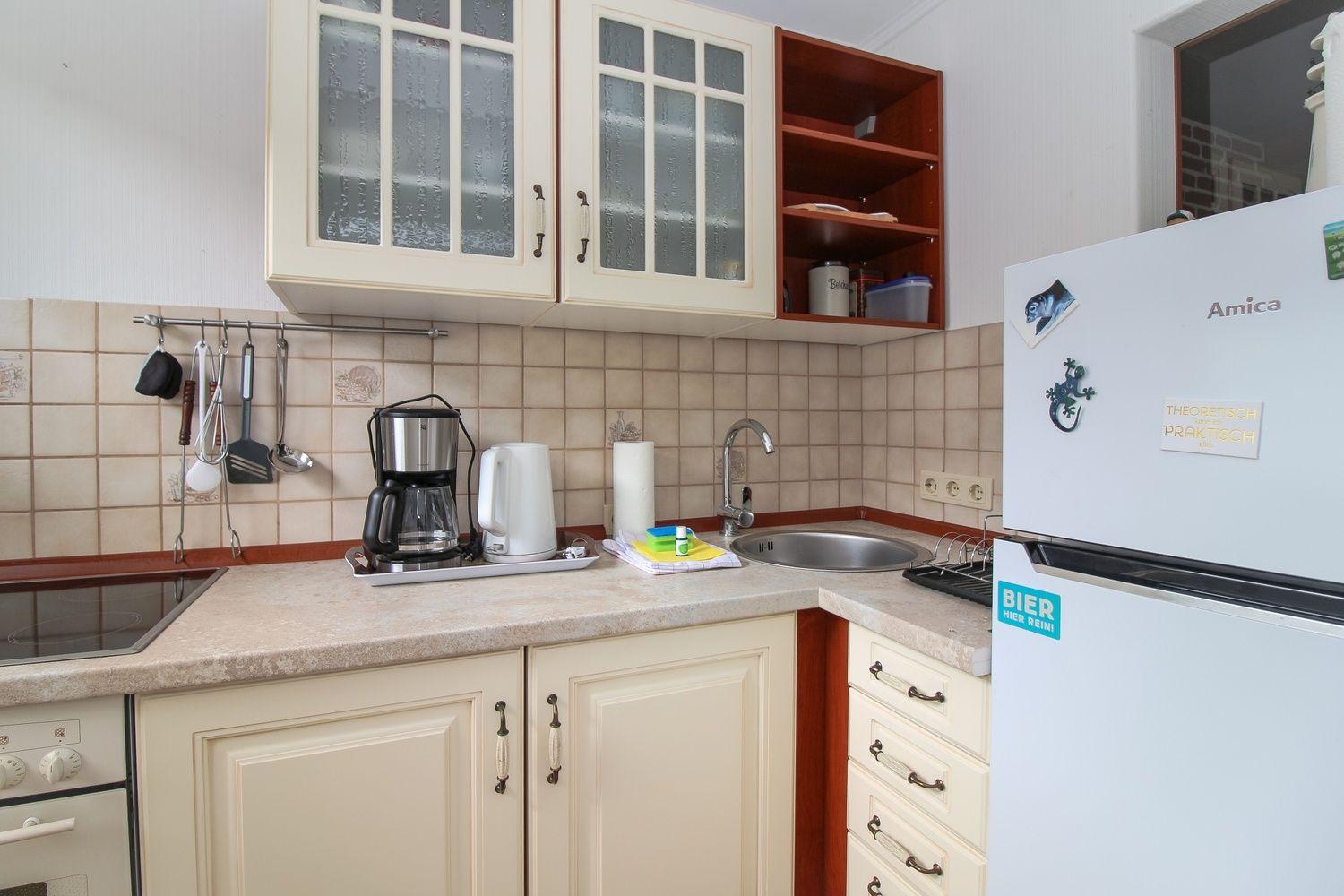 Eine Erstausstattung (Spülmaschinentab, WC-Papier, kl. Flasche Spülmittel, Spültuch und Topfschwamm) ist vorhanden.