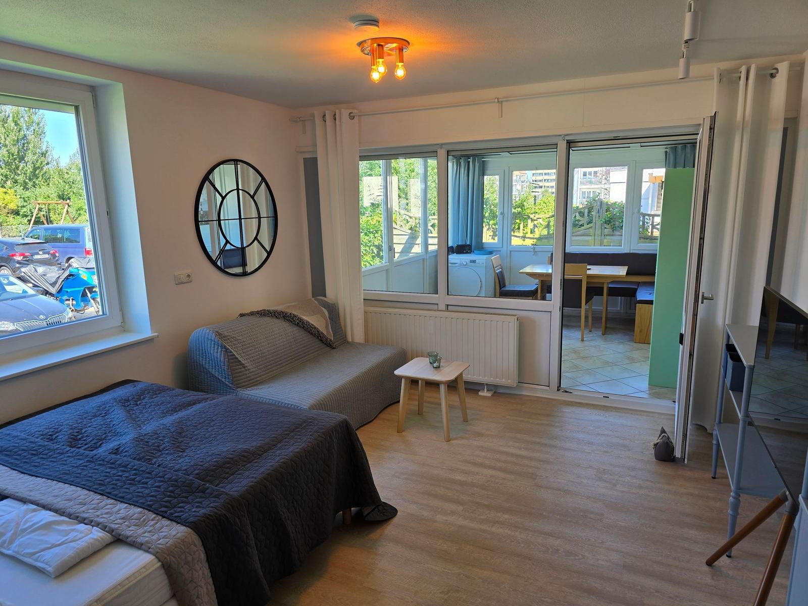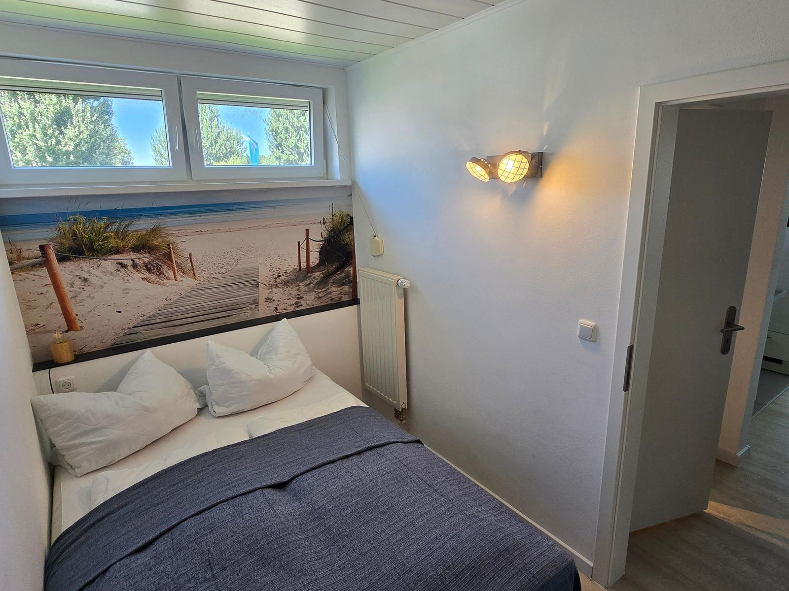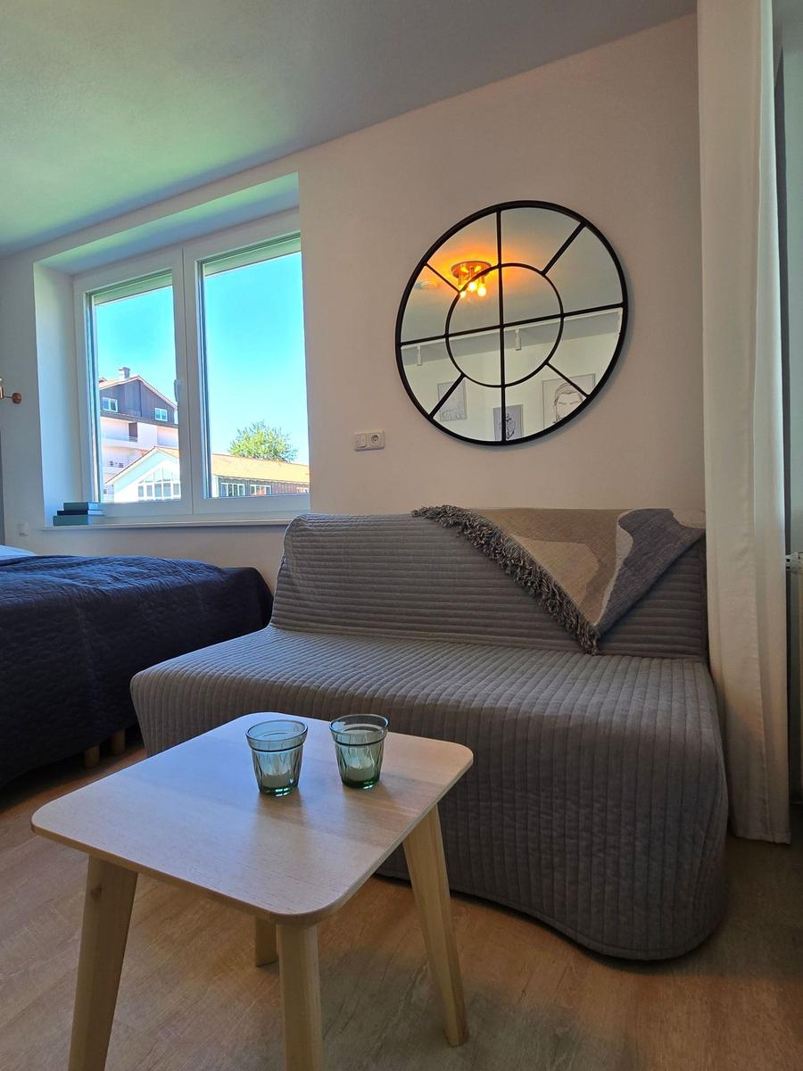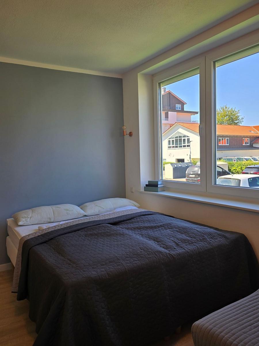 Diese moderne Ferienwohnung bietet ein allergikergeeignetes Ambiente, ideal für einen erholsamen Aufenthalt. Der großzügige Wohnraum mit einem Schlafsofa lädt zum Entspannen ein, während das Schlafzimmer mit zwei Doppelbetten Ruhe und Komfort bietet.