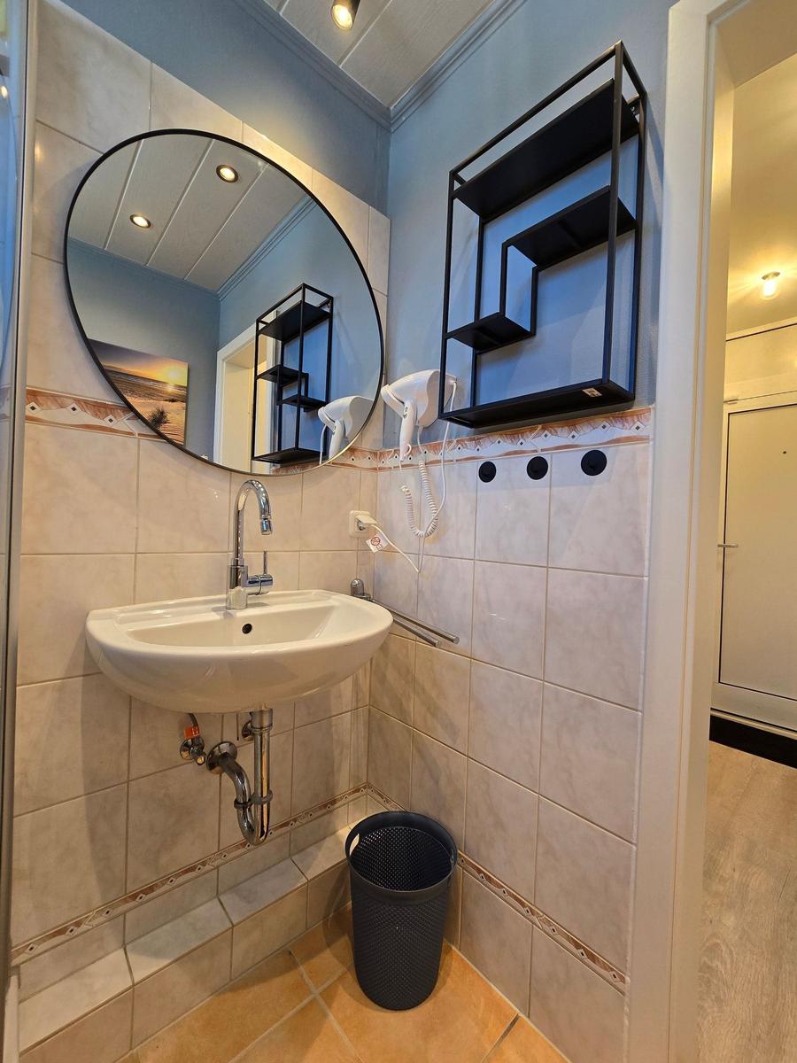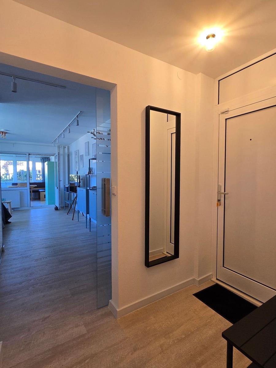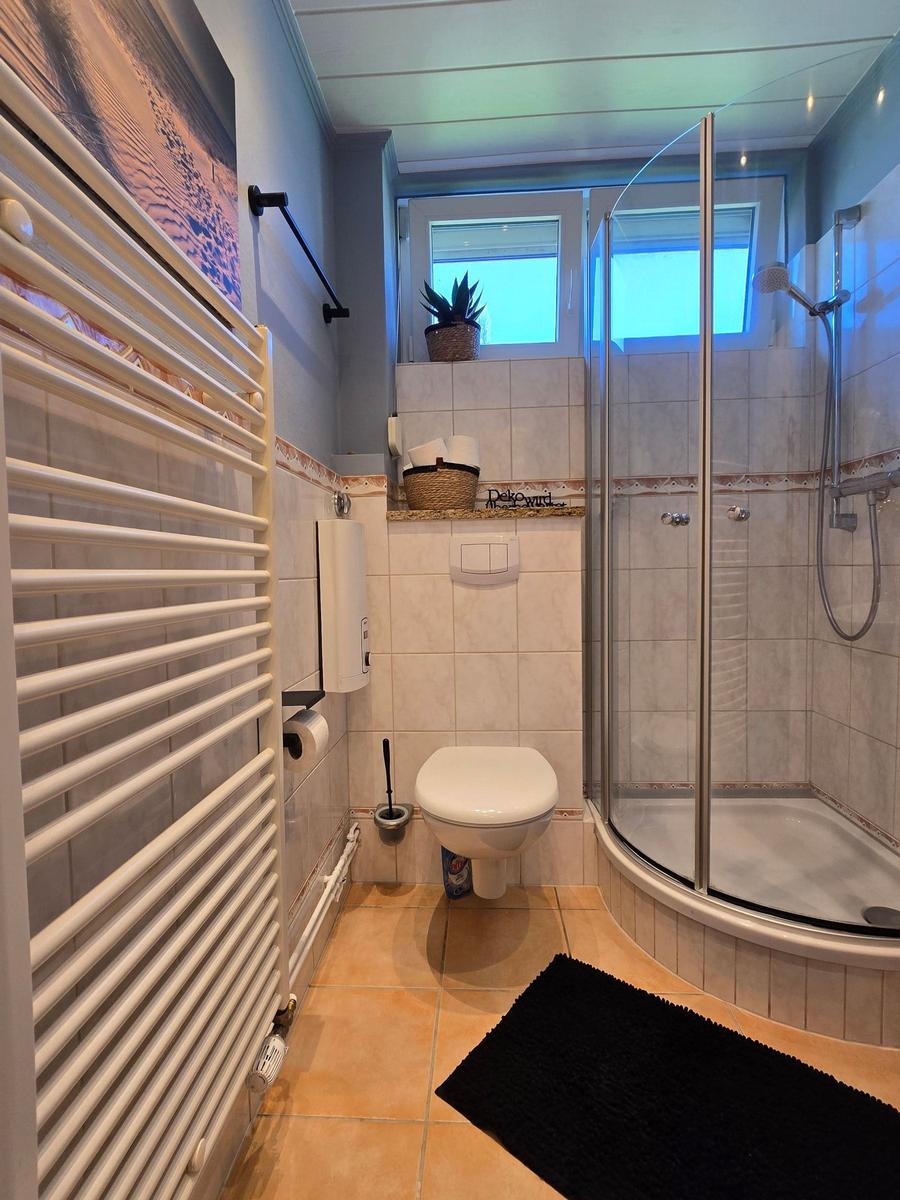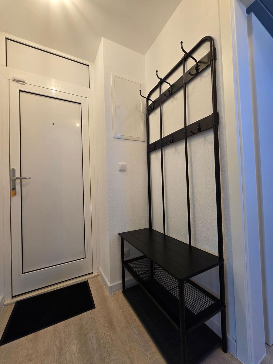 Das Badezimmer verfügt über eine bodengleiche Dusche, ein Fenster, einenHaartrockner, Spiegel und ausreichend Stauraum. Die Wohnung ist mit einer HiFi-Anlage, TV, Waschmaschine und Wäschetrockner ausgestattet und bietet zudem einen Parkplatz.