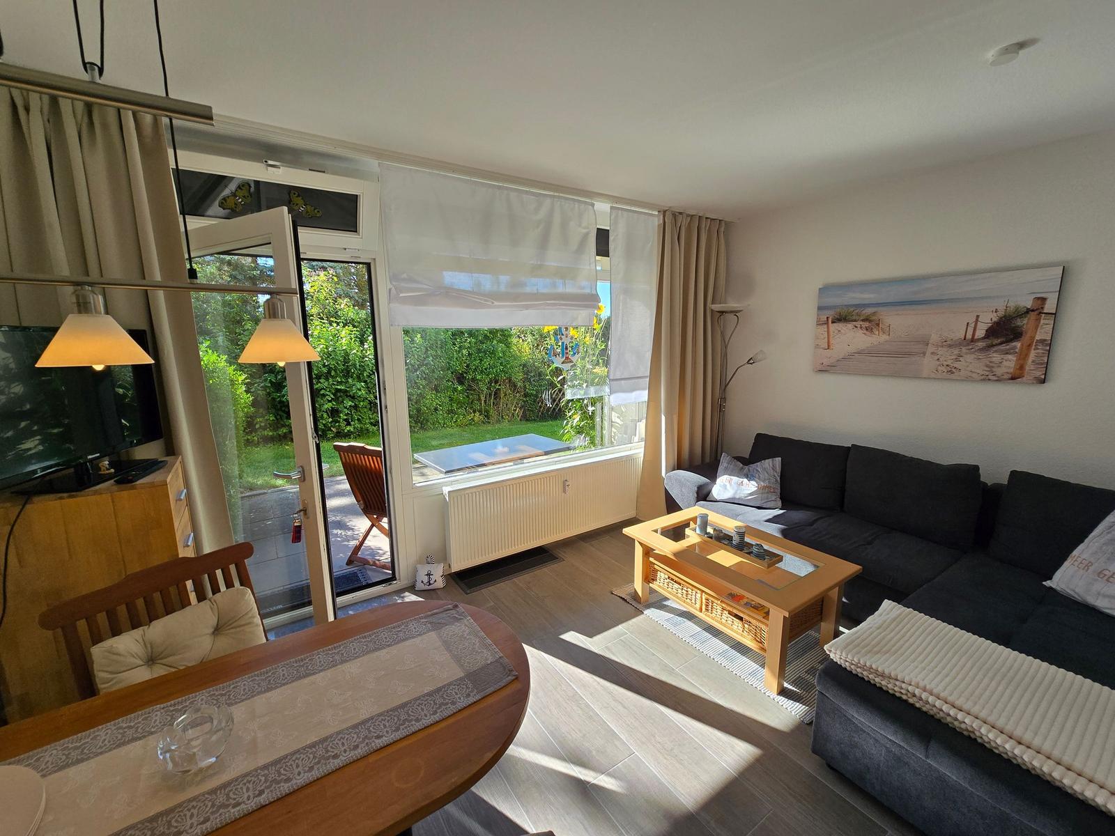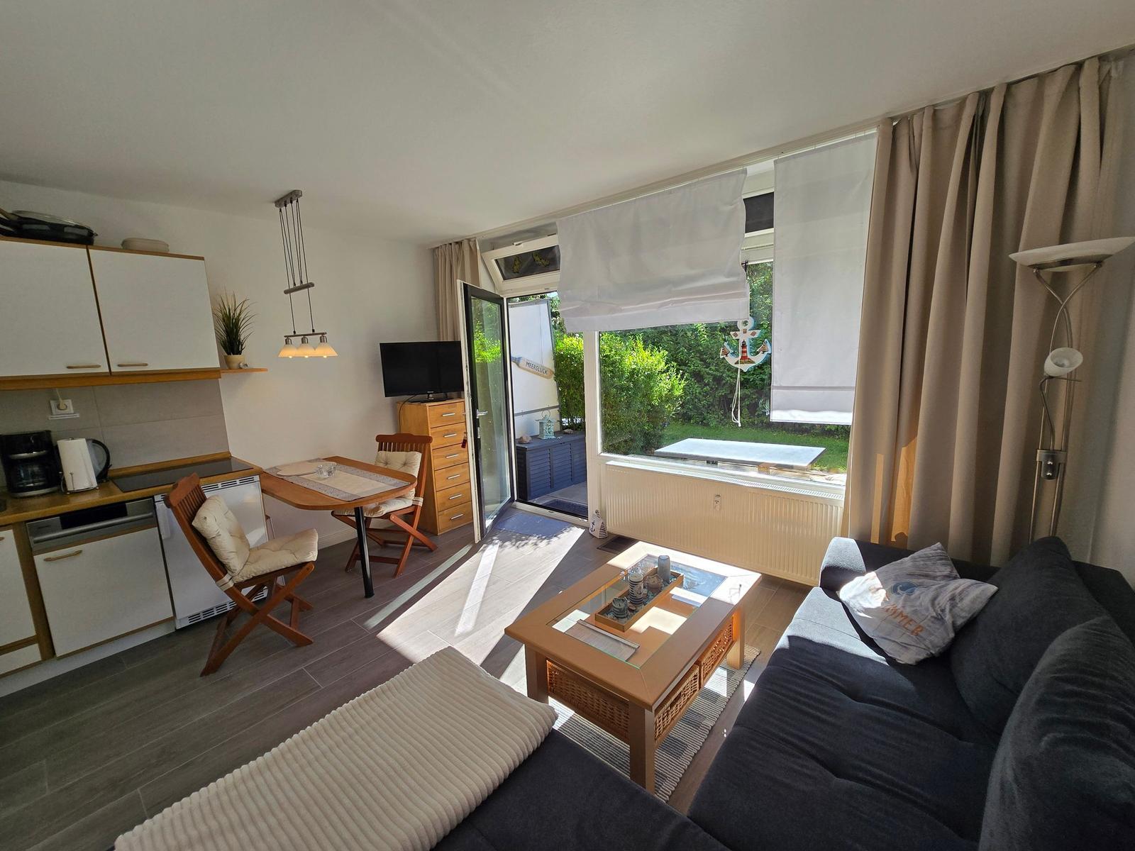 Die Unterkunft „Vier Jahreszeiten 5-2“ in Großenbrode bietet einen ansprechenden Außenbereich mit einer überdachten Terrasse, die mit Gartenmöbeln ausgestattet ist. Dieser Rückzugsort ermöglicht es, bei Meeresrauschen entspannte Stunden im Freien zu genießen. Die Lage direkt am Sandstrand, nur etwa 50 Meter entfernt, eröffnet zahlreiche Freizeitmöglichkeiten wie Schwimmen, Surfen und Beachvolleyball. Darüber hinaus ist die Umgebung ideal für Aktivitäten an Land, darunter Wandern und Radfahren. Die gemeinschaftlich nutzbaren Waschmaschine und Trockner im Haus erleichtern längere Aufenthalte. Ein kostenloser, privater Parkplatz steht direkt am Gebäude zur Verfügung. Die ruhige Dorflage in Großenbrode rundet das Angebot ab und schafft ein angenehmes Ambiente für einen erholsamen Urlaub.