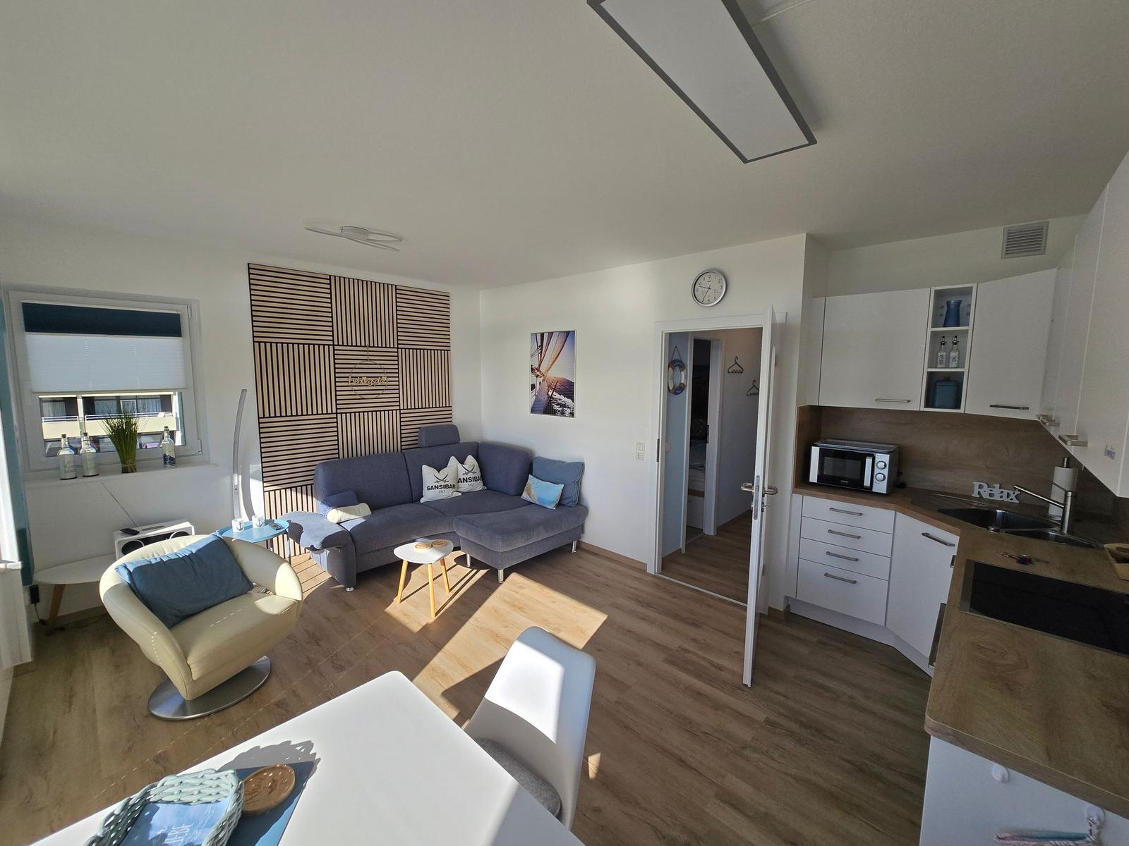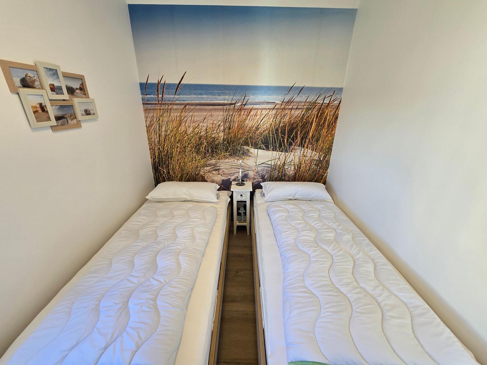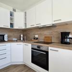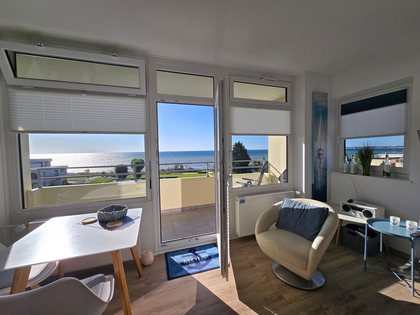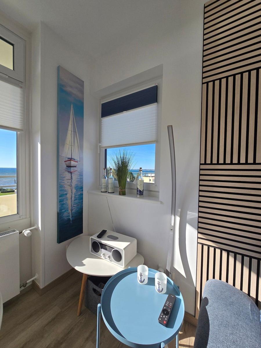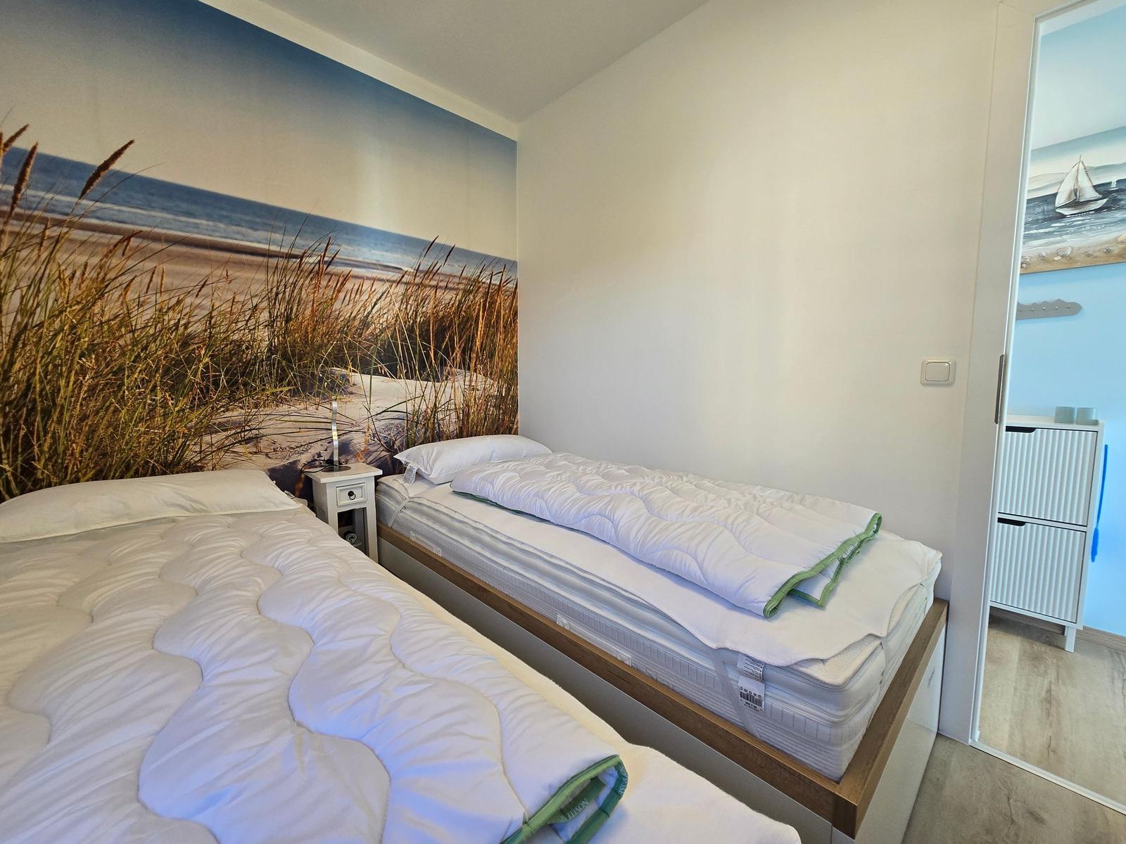 Die Ferienwohnung "Strandglück 2-45" im Vier Jahreszeiten bietet auf 36 m² Wohnfläche eine moderne und komfortable Unterkunft für bis zu zwei Gäste. Der separate Wohn-Essbereich mit offener Küche ist hochwertig ausgestattet: ein Induktionsherd, Backofen, Mikrowelle, Spülmaschine, Kühlschrank mit Gefrierfach, Wasserkocher, Toaster und Kaffeemaschine stehen zur Verfügung. Ein gemütlicher Esstisch, sowie ein Sofa und ein bequemer Sessel sorgen für entspannte Stunden. Das separate Schlafzimmer ist mit zwei Einzelbetten (0,90 m x 2,00 m) ausgestattet. Das neuwertige Badezimmer verfügt über eine Dusche mit Wanne. WLAN, Staubsauger und die notwendige Kücheninventar sind ebenfalls vorhanden. Praktisch sind die gemeinschaftlich nutzbaren Waschmaschine und der Trockner im Haus. Ein Aufzug ermöglicht einfachen Zugang zur Wohnung, und ein kostenloser Privatparkplatz ist ebenfalls vorhanden. Die Nichtraucherwohnung bietet Sichtschutz an allen Fenstern für ungestörte Momente.