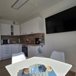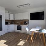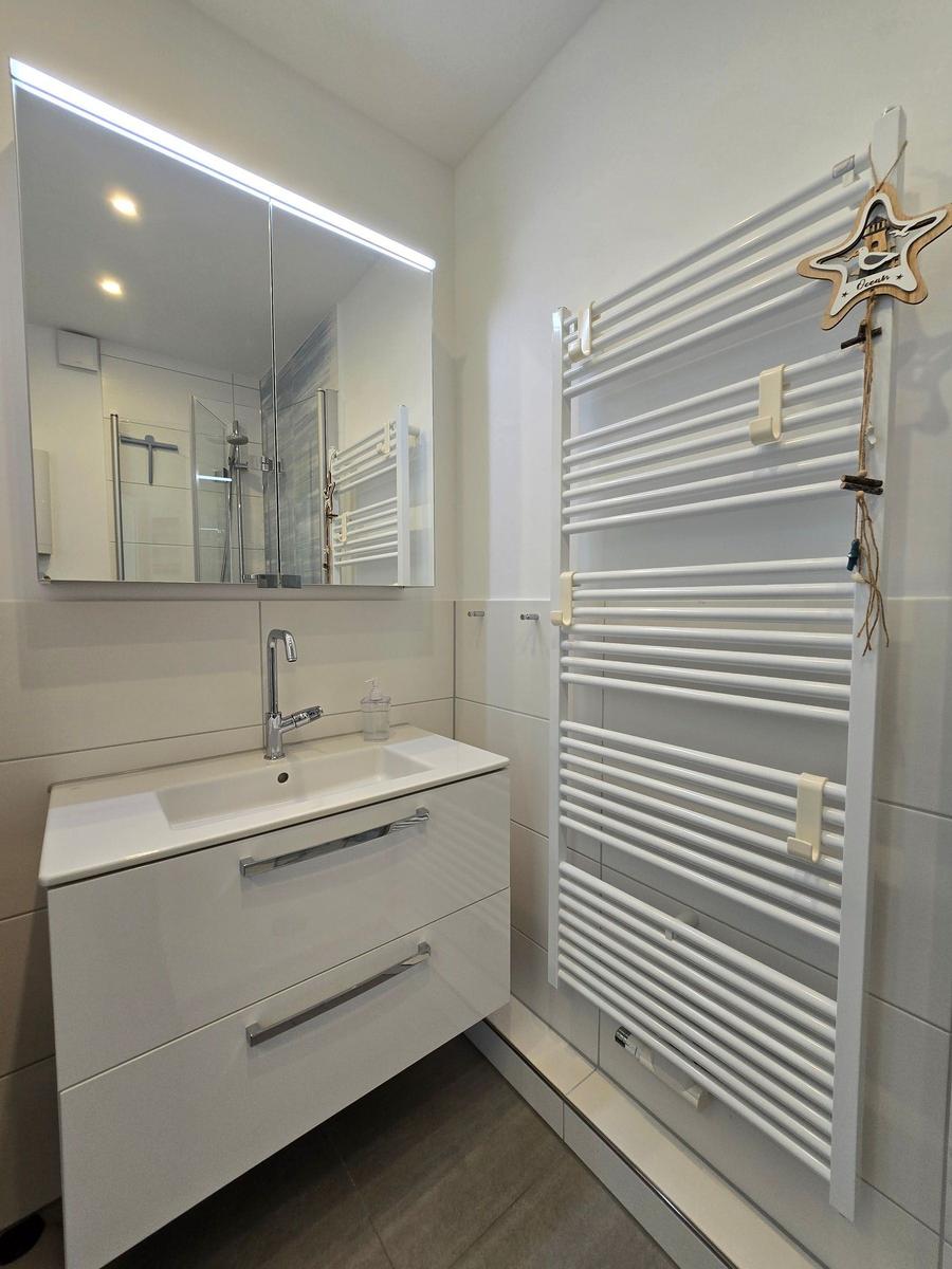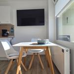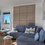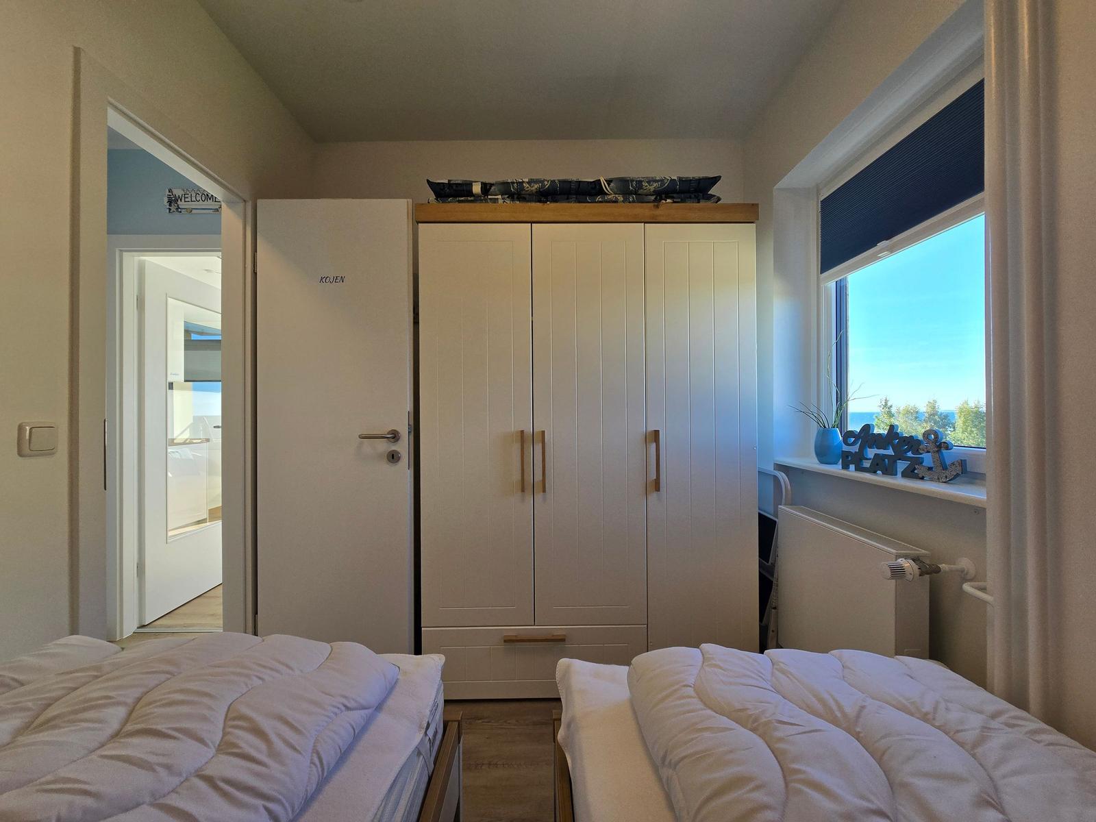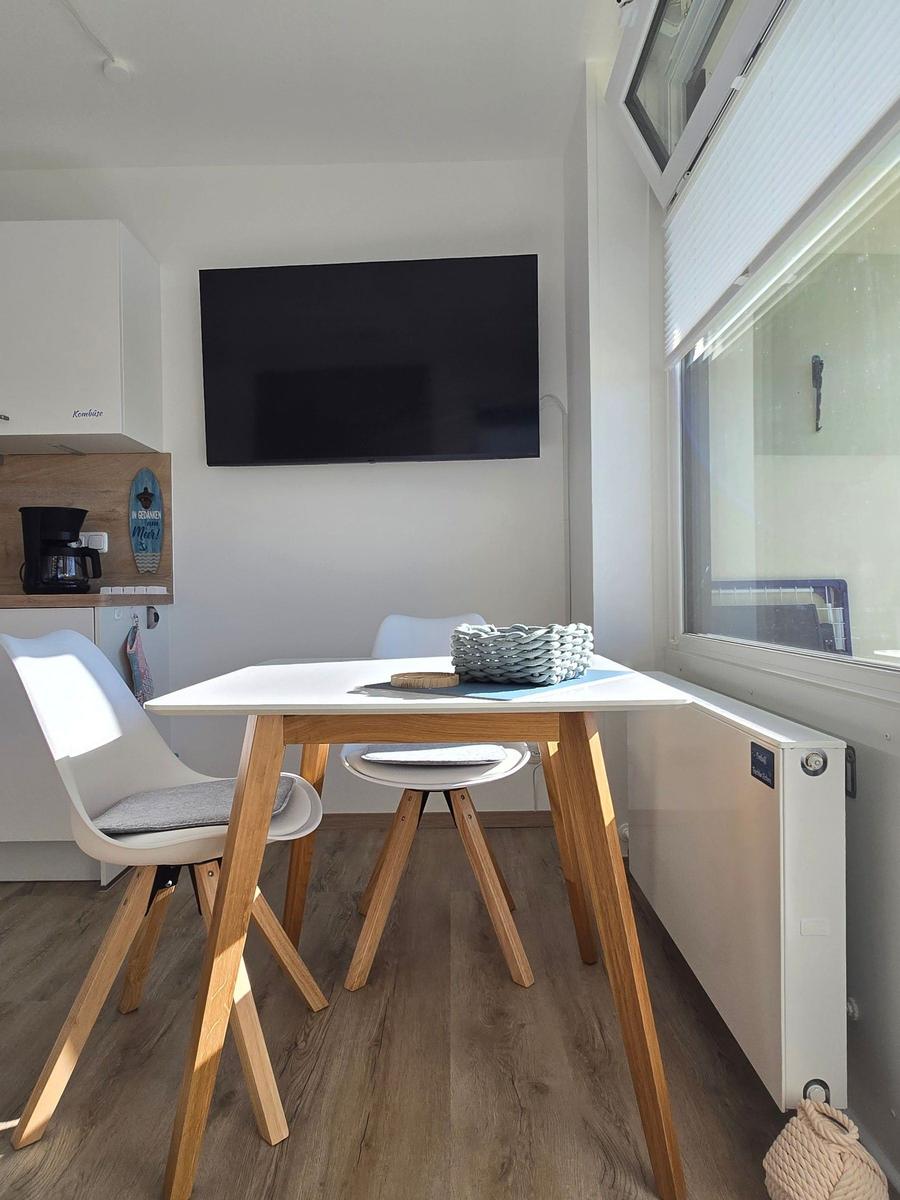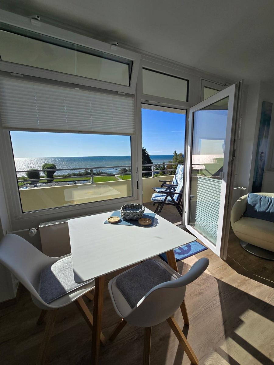 Die Ferienwohnung "Strandglück 2-45" im Vier Jahreszeiten bietet auf 36 m² Wohnfläche eine moderne und komfortable Unterkunft für bis zu zwei Gäste. Der separate Wohn-Essbereich mit offener Küche ist hochwertig ausgestattet: ein Induktionsherd, Backofen, Mikrowelle, Spülmaschine, Kühlschrank mit Gefrierfach, Wasserkocher, Toaster und Kaffeemaschine stehen zur Verfügung. Ein gemütlicher Esstisch, sowie ein Sofa und ein bequemer Sessel sorgen für entspannte Stunden. Das separate Schlafzimmer ist mit zwei Einzelbetten (0,90 m x 2,00 m) ausgestattet. Das neuwertige Badezimmer verfügt über eine Dusche mit Wanne. WLAN, Staubsauger und die notwendige Kücheninventar sind ebenfalls vorhanden. Praktisch sind die gemeinschaftlich nutzbaren Waschmaschine und der Trockner im Haus. Ein Aufzug ermöglicht einfachen Zugang zur Wohnung, und ein kostenloser Privatparkplatz ist ebenfalls vorhanden. Die Nichtraucherwohnung bietet Sichtschutz an allen Fenstern für ungestörte Momente.