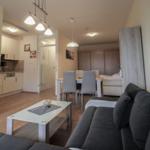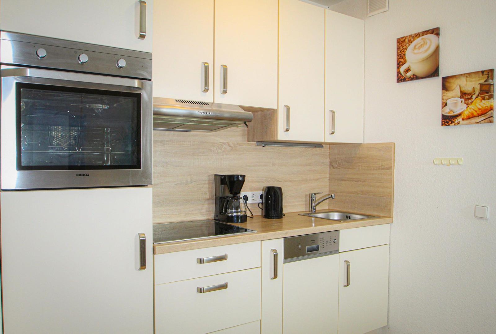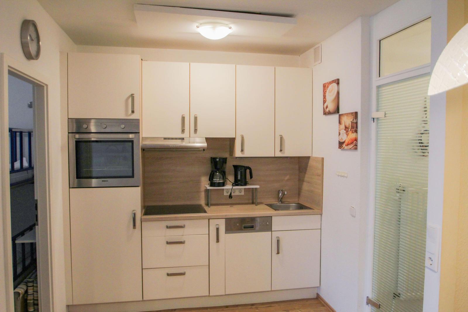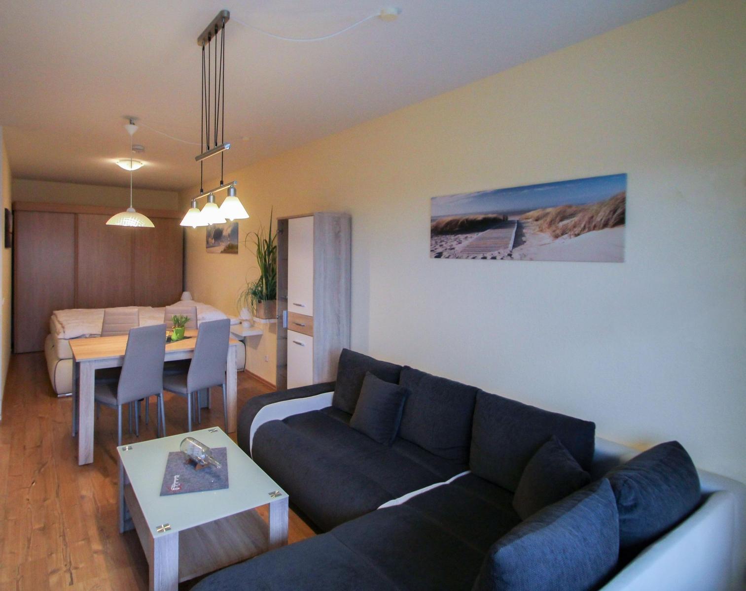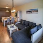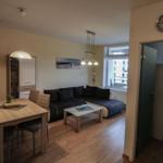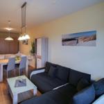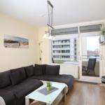 Die Ferienwohnung Vier Jahreszeiten 2-52 erstreckt sich über 46 m² und bietet Platz für bis zu vier Personen. Im sechsten Stock gelegen, ist die Unterkunft bequem per Aufzug erreichbar und verfügt über einen Privatparkplatz direkt am Haus. Das großzügige Wohnzimmer mit Laminatboden ist mit einer gemütlichen Sofaecke und zwei Fernsehern ausgestattet. Die moderne, offene Küche ist mit einem Cerankochfeld, Backofen, Kühlschrank mit Gefrierfach, Spülmaschine und diversen kleinen Küchengeräten versehen und bietet einen angrenzenden Essbereich. Das Schlafzimmer mit Doppelbett und ausreichend Stauraum sorgt für eine angenehme Nachtruhe. Das Bad ist mit einer Dusche mit Wanne, Waschbecken und WC ausgestattet. Eine gemeinschaftlich nutzbare Waschmaschine und ein Trockner sind im Gebäude vorhanden. WiFi steht zur Verfügung, und die Fenster sind mit Sichtschutz versehen, um die Privatsphäre zu wahren.