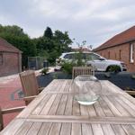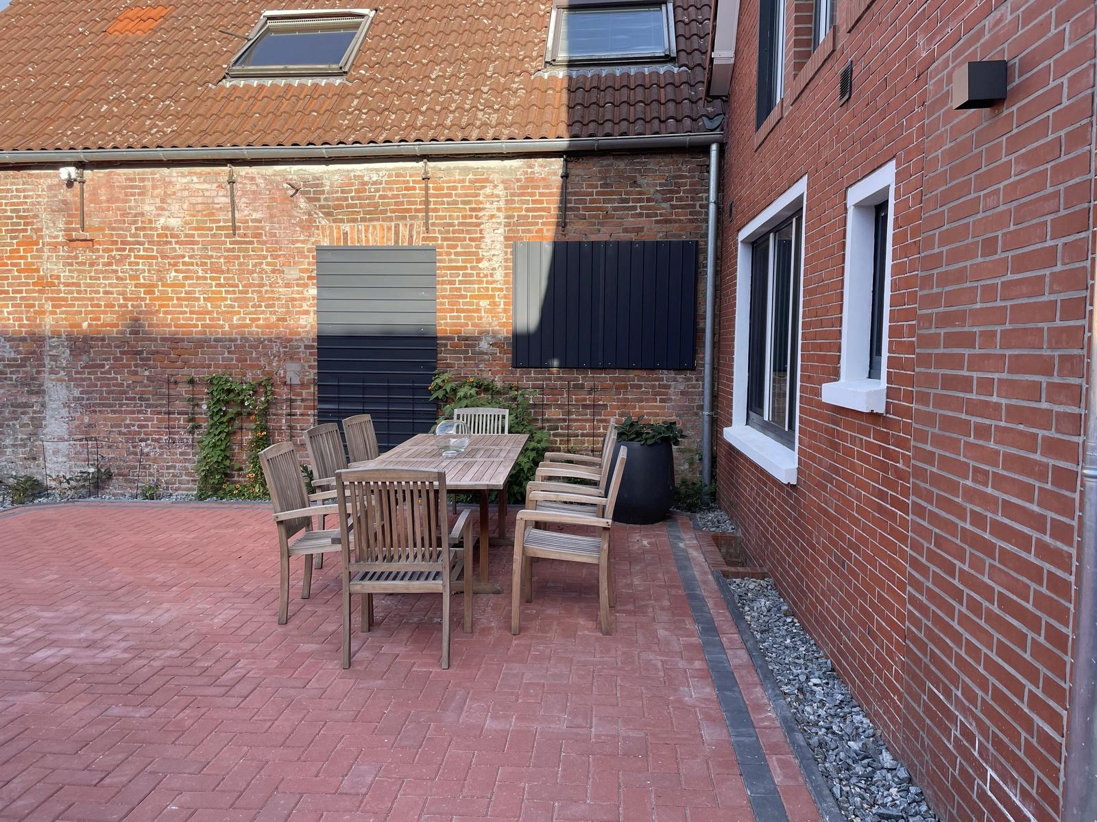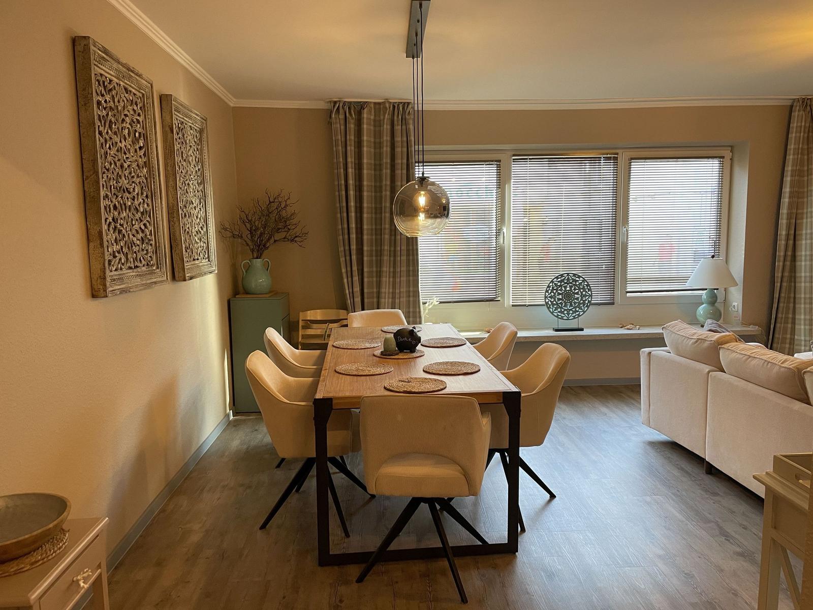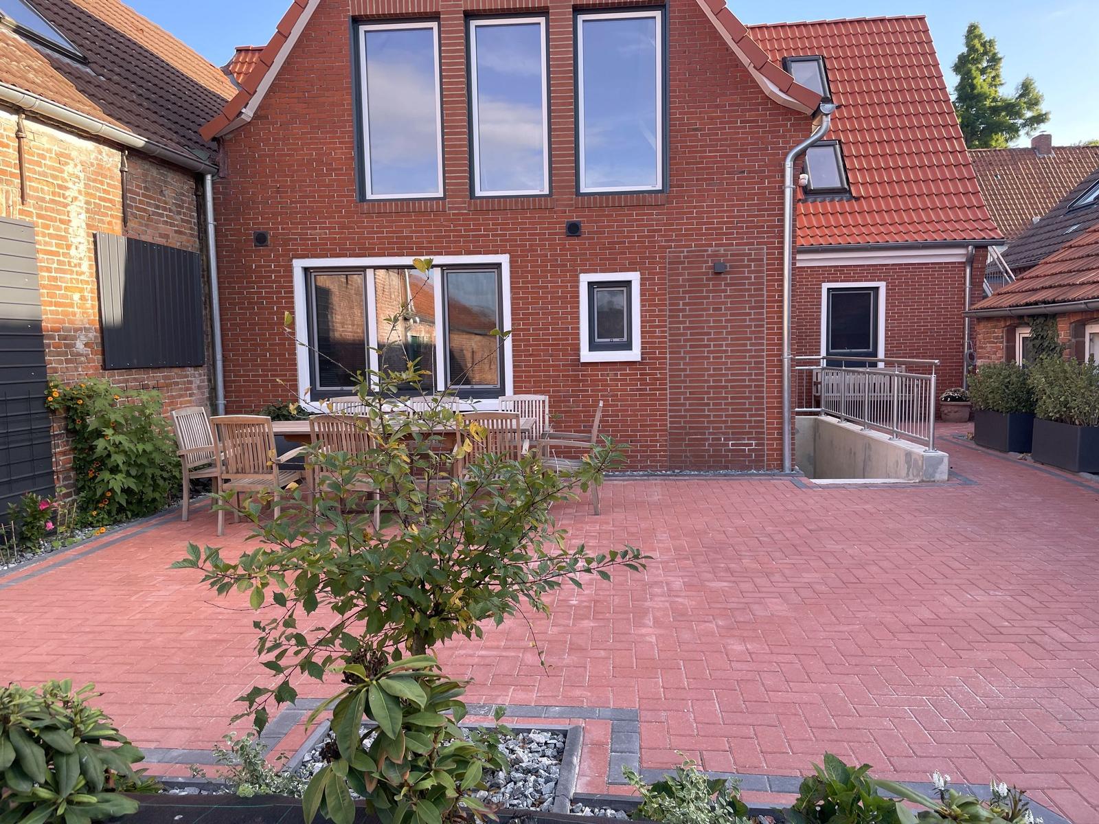 Die Ferienwohnung „Am Denkmal“ in Hage bietet einen einladenden Außenbereich mit einer großzügigen Terrasse, die mit hochwertigen Gartenmöbeln ausgestattet ist. Hier können die Gäste entspannen und die frische Luft genießen. Es stehen drei gepflasterte PKW-Stellplätze auf dem Grundstück zur Verfügung, sowie eine abschließbare Garage für mitgebrachte Fahrräder. Für die Kleinsten sind ein Bollerwagen und ein Kinderhochstuhl kostenfrei erhältlich. Die Unterkunft liegt zentral und ermöglicht den Zugang zu Einkaufsmöglichkeiten, Bäckereien und Restaurants, die fußläufig erreichbar sind. Auch der schöne Schlosspark Lütetsburg, ideal für Spaziergänge, befindet sich in der Nähe. Ob für entspannende Tage am Strand oder Ausflüge in die Umgebung, dieser Außenbereich ist der perfekte Ort zur Erholung. Die Unterkunft ist ab Februar 2025 verfügbar.