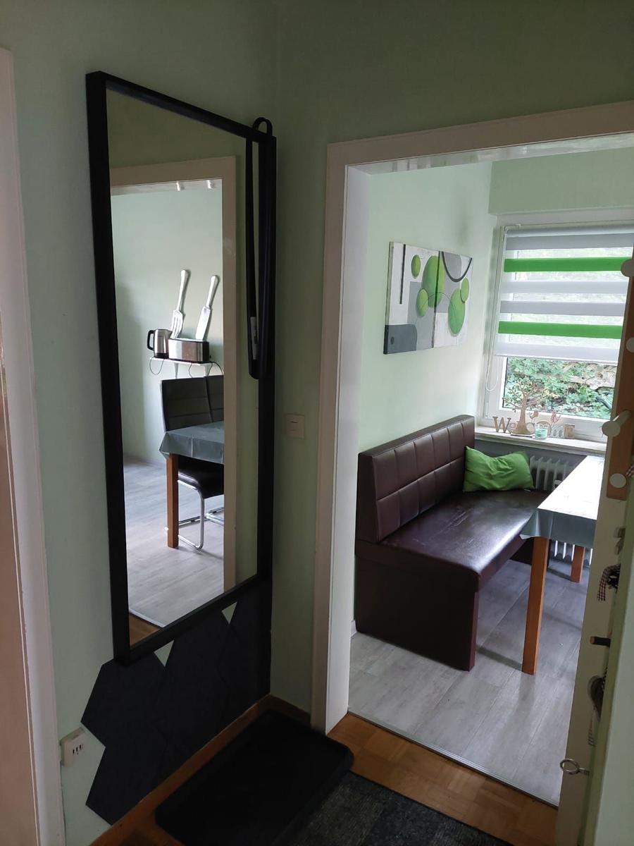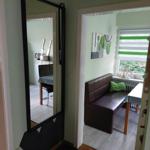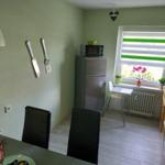 Die Ferienwohnung bietet einen komfortablen Rückzugsort mit einem geschmackvoll eingerichteten Schlafzimmer, das mit zwei Doppelbetten ausgestattet ist. Die separate Küche überzeugt durch moderne Annehmlichkeiten wie einen Geschirrspüler, einen Elektro-/Gasherd, einen Backofen und einen Kühlschrank sowie weiteren hilfreichen Geräten wie einer Kaffeemaschine, einem Toaster und einem Wasserkocher. Der großzügige Esstisch lädt zu gemeinsamen Mahlzeiten ein.