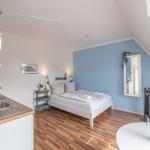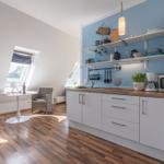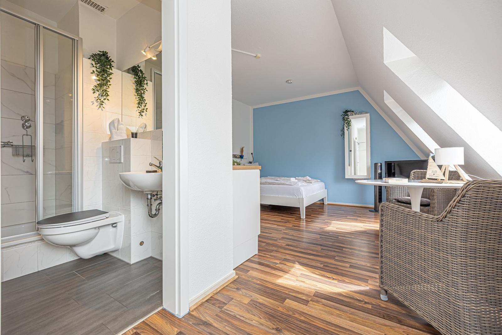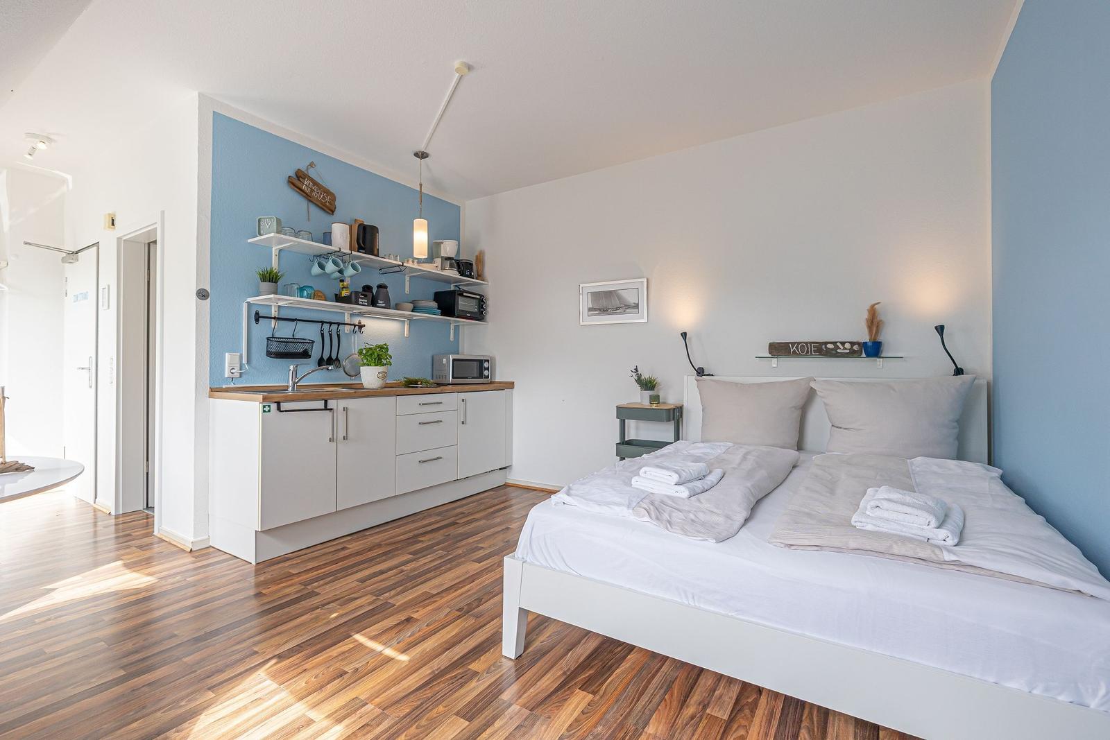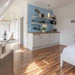 Die Ferienwohnung bietet eine perfekte Kombination aus Komfort und modernem Design. Sie verfügt über ein gemütliches Schlafzimmer mit einem Doppelbett, das für erholsame Nächte sorgt. Die offene Küche ist voll ausgestattet mit einem Elektro-/Gasherd, Backofen, Mikrowelle, Kühlschrank, Kaffeemaschine, Toaster und einem Gefrierschrank, sodass die Zubereitung von Mahlzeiten zum Vergnügen wird.