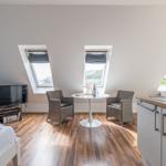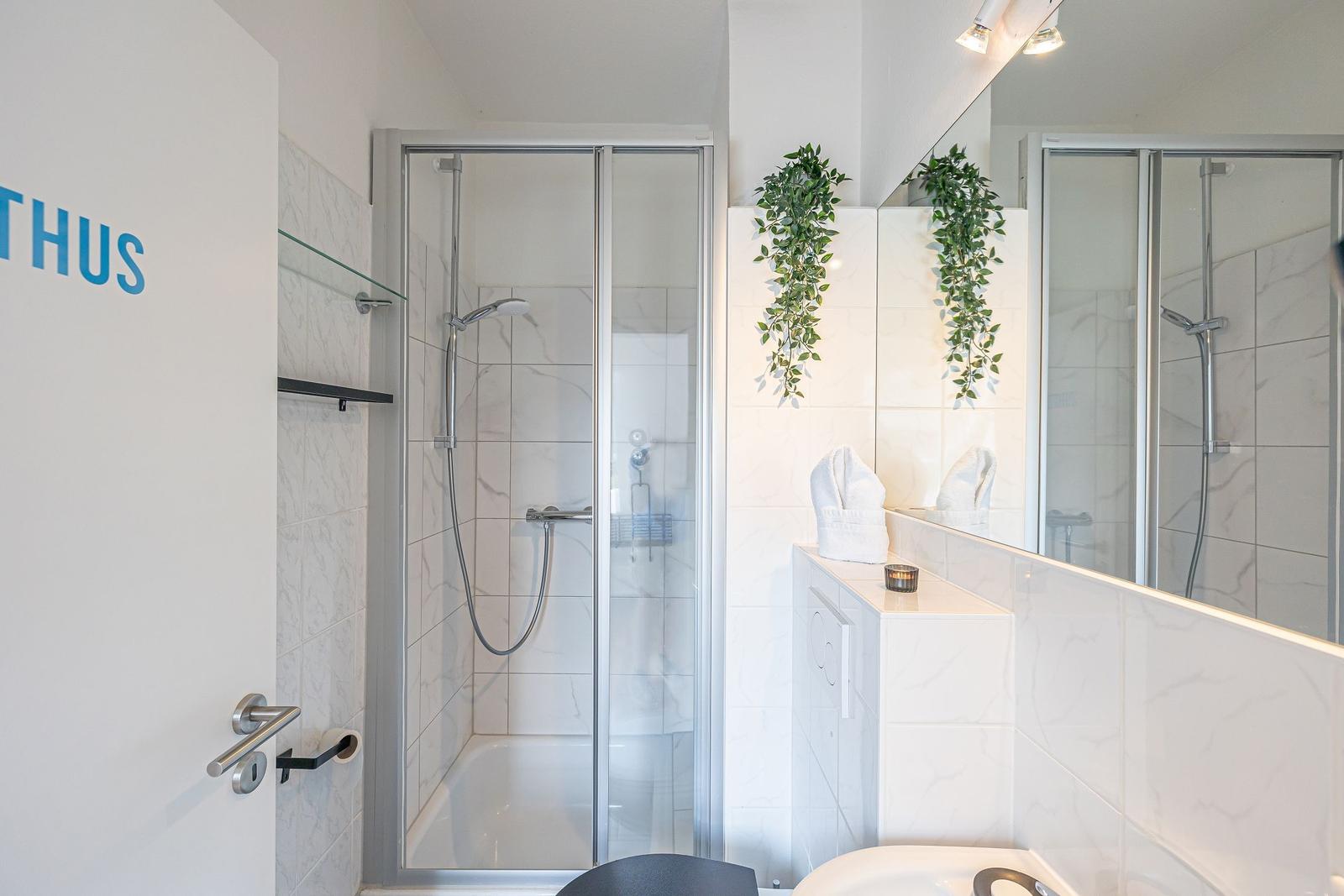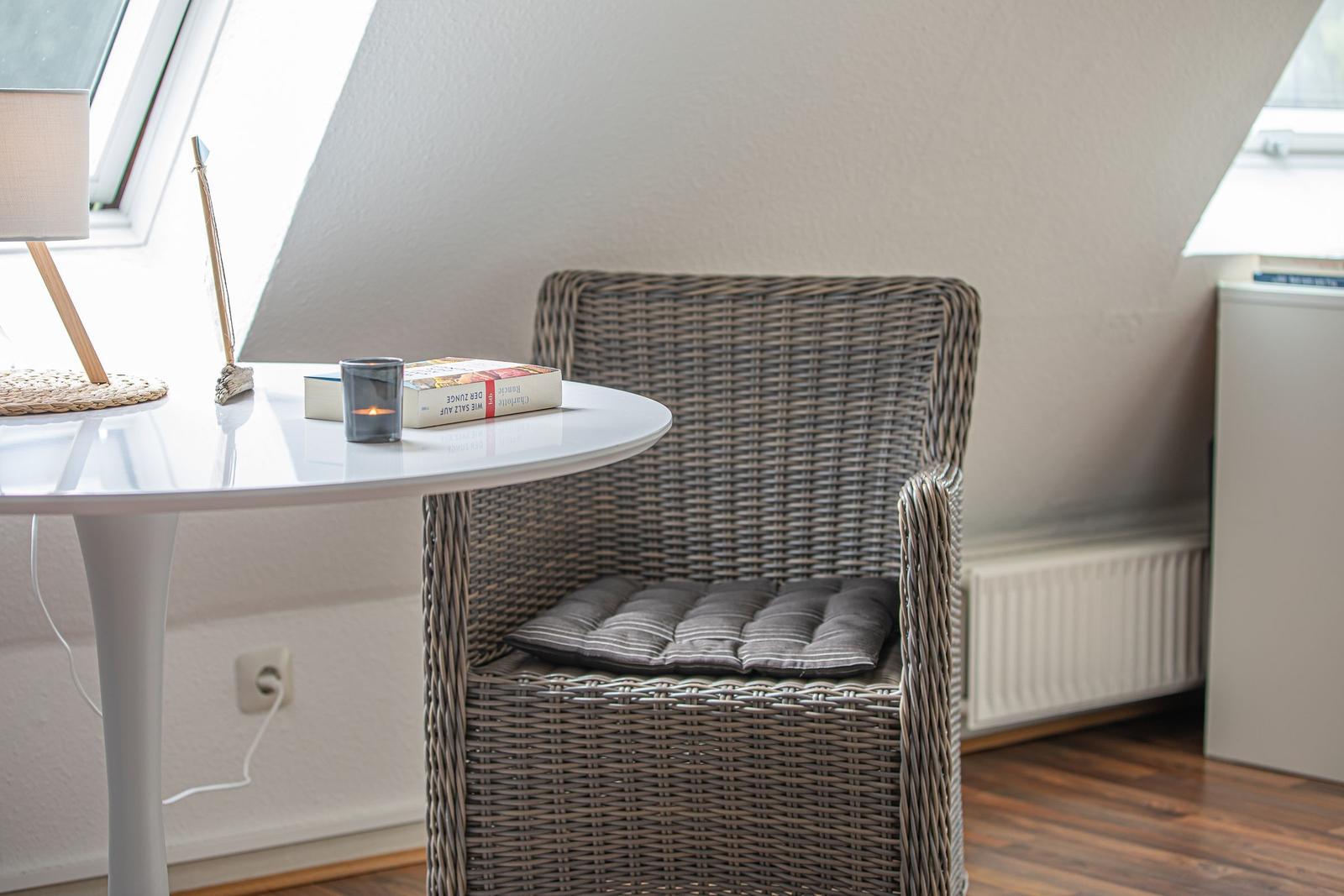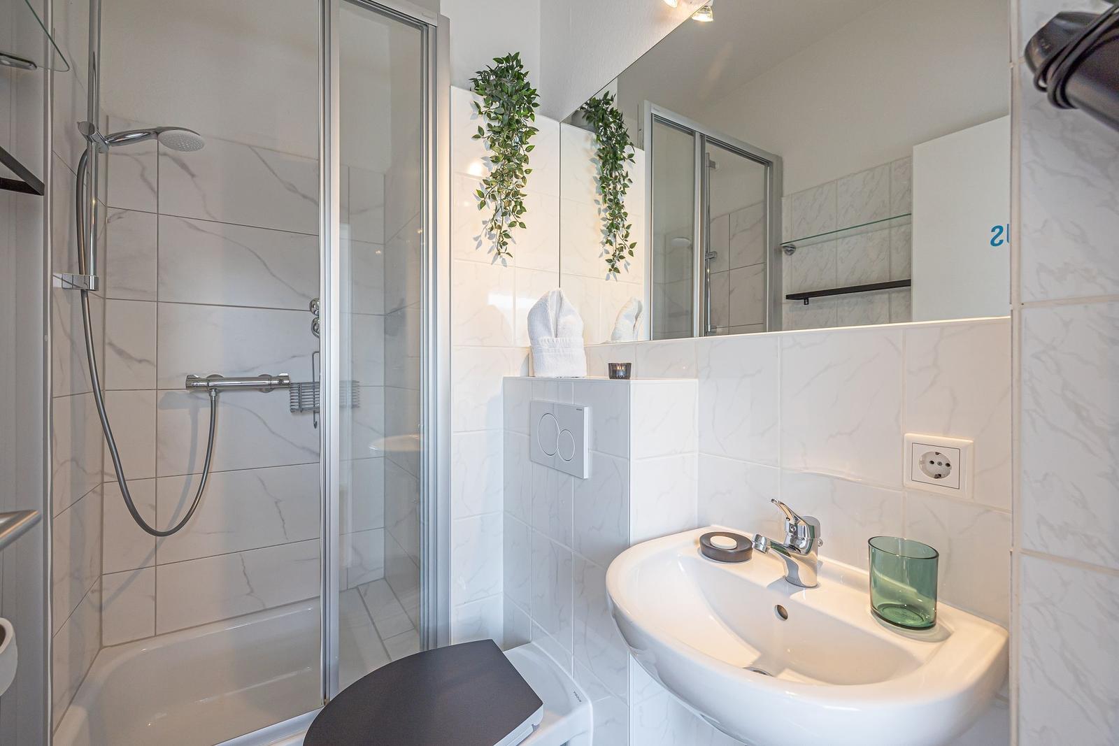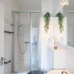 Das Badezimmer ist mit einem Duschbad, einem Haartrockner sowie einem Erste-Hilfe-Set ausgestattet. Die Wohnung ist allergikergeeignet und bietet mit WLAN (25 MBit/s) eine schnelle Internetverbindung. Eine HiFi-Anlage und ein Fernseher sorgen für Unterhaltung. Zur weiteren Ausstattung gehören eine Waschmaschine, ein Wäschetrockner, Geschirr und Besteck, sowie grundlegende Gewürze. Ein Esstisch lädt zum geselligen Beisammensein ein. Heizung, Ventilator und Rauchmelder gewährleisten ein sicheres und angenehmes Wohnklima.