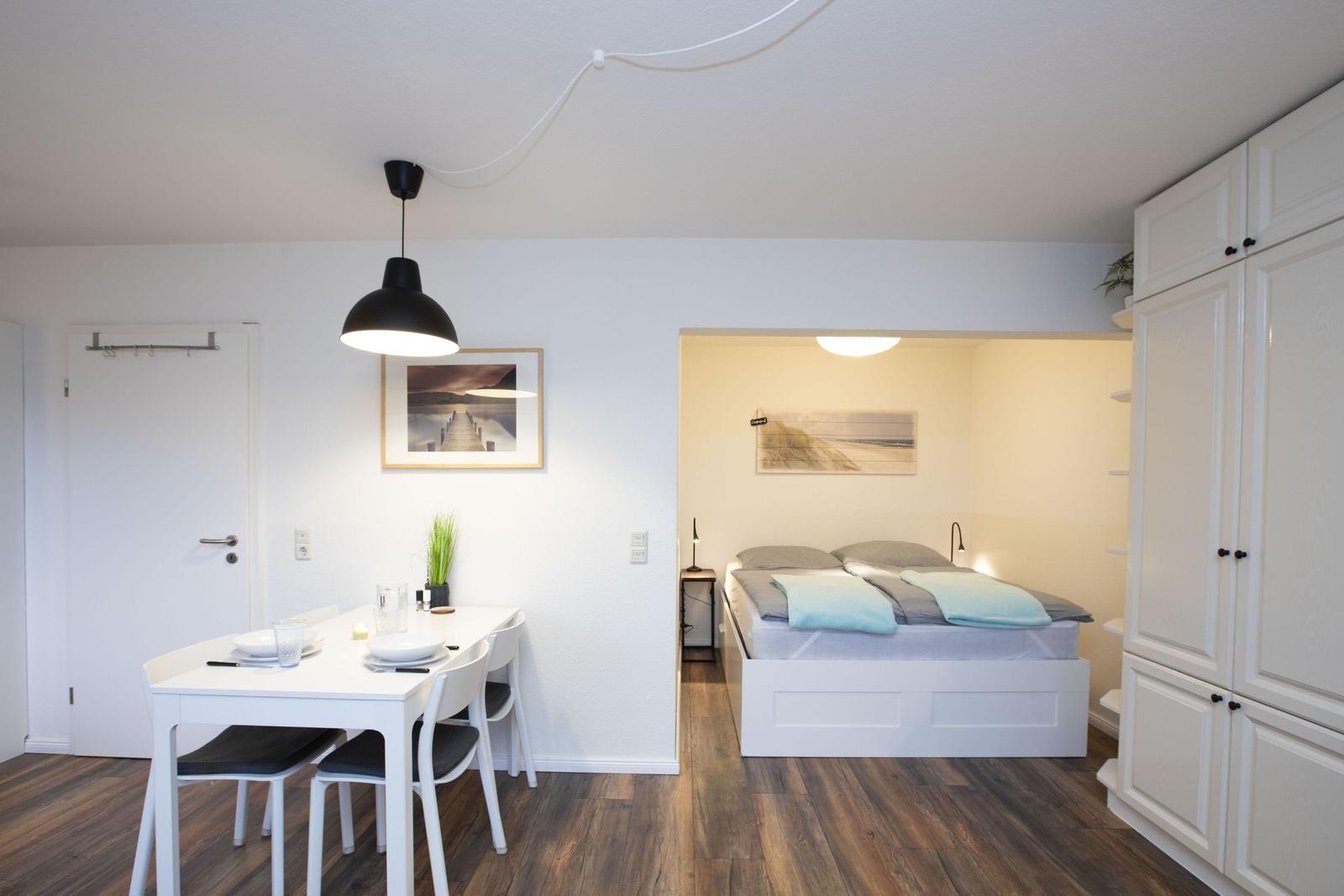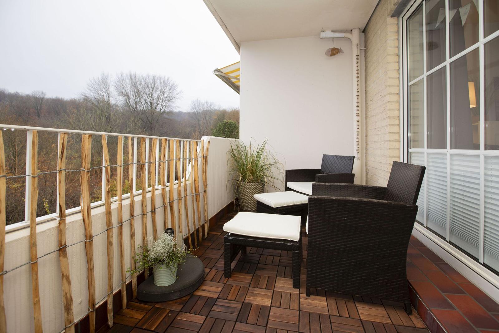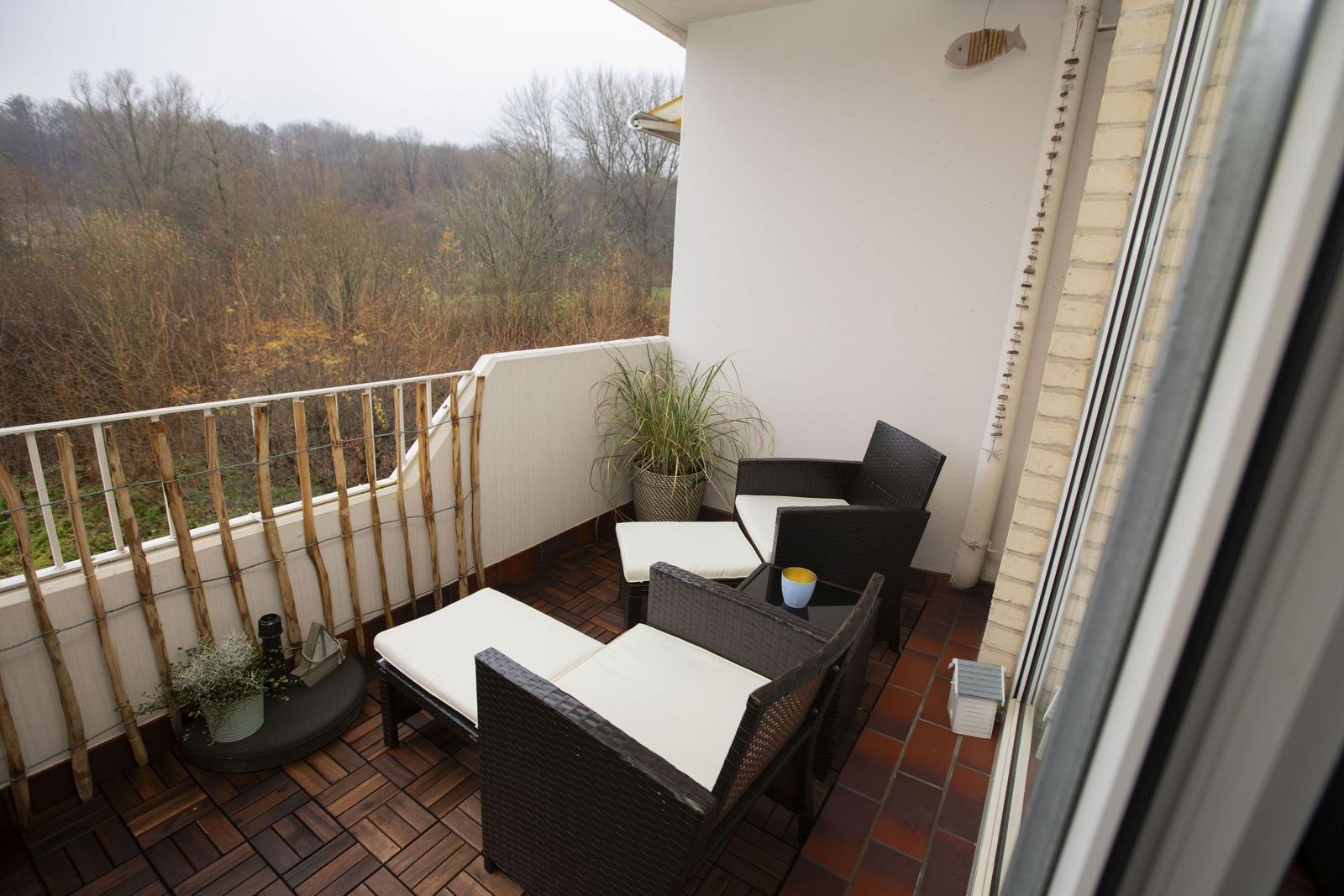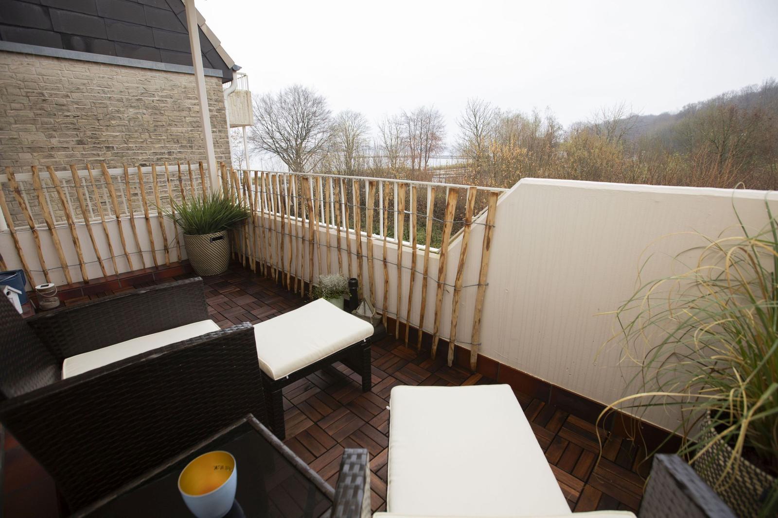 Das Studio-Apartment "Erik" in der Strandresidenz Wassersleben bietet einen überdachten Balkon mit einem beeindruckenden seitlichen Blick auf das Meer und die Flensburger Förde. Die hervorragende Lage, nur 50 Meter vom feinsandigen Strand entfernt, ermöglicht erholsame Stunden im Freien und entspannende Spaziergänge am Wasser. Der großzügige Balkon ist mit einem kleinen Sitz- und Essbereich ausgestattet und eignet sich perfekt für Mahlzeiten unter freiem Himmel oder gemütliche Abende bei Sonnenuntergang. Die Ferienanlage selbst bringt die Vorteile einer gepflegten Außenanlage mit, während Einkaufsmöglichkeiten in nur 150 Metern und Restaurants in 200 Metern erreichbar sind. Zudem steht eine gemeinschaftlich nutzbare Waschmaschinenraumm zur Verfügung. Dieser einzigartige Außenbereich schafft idealen Raum, um die maritime Umgebung und die Natur zu genießen.