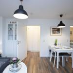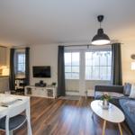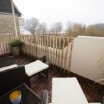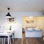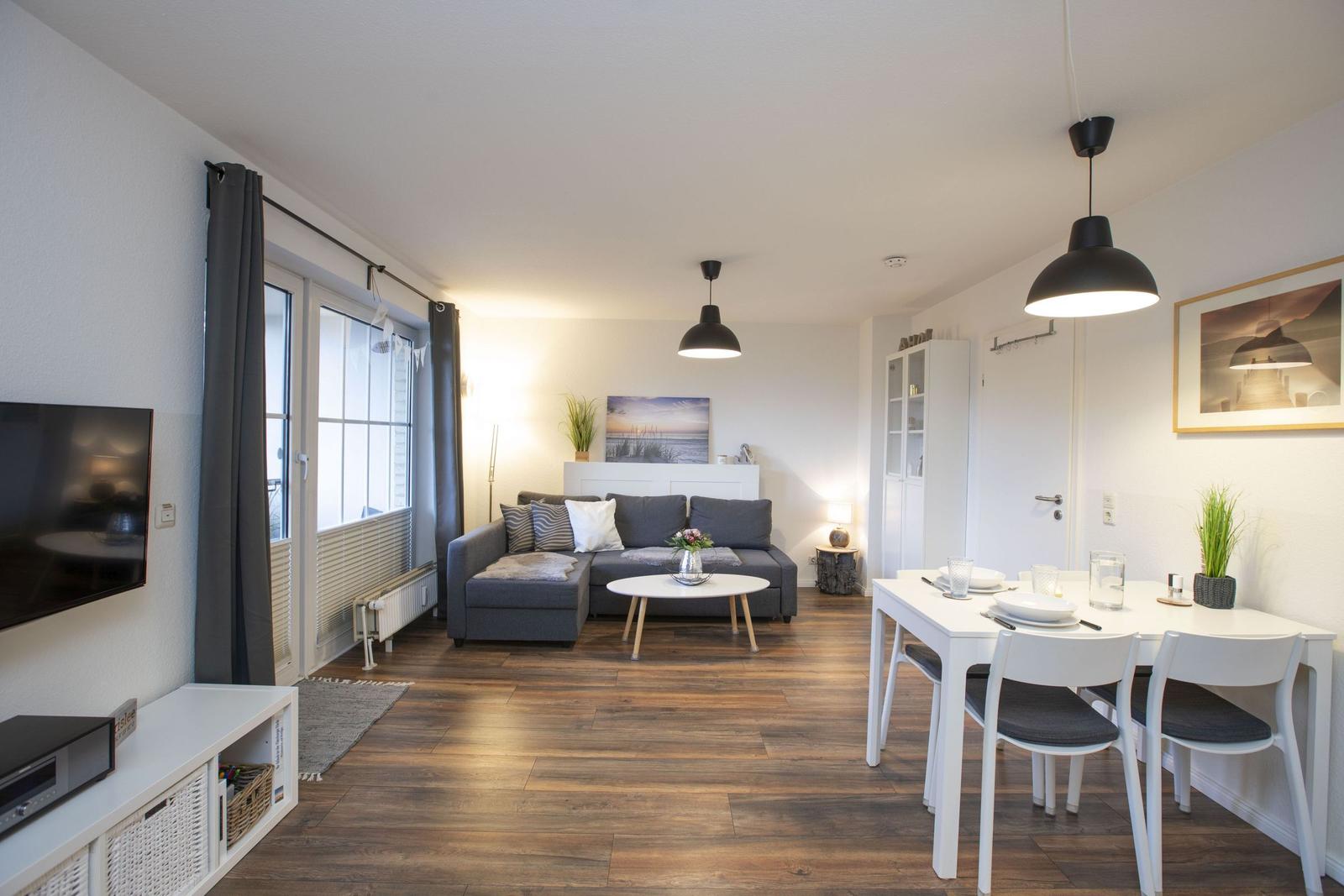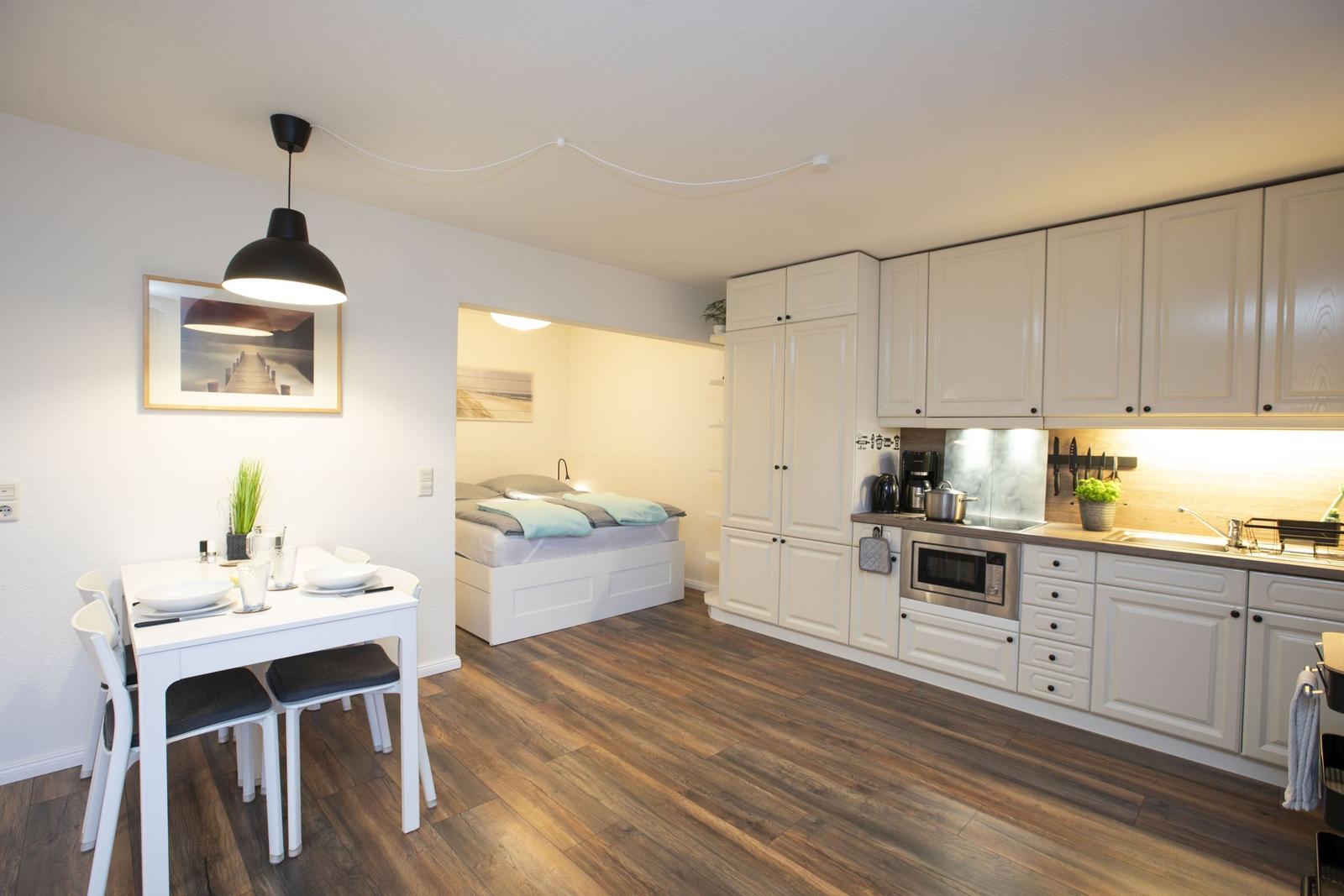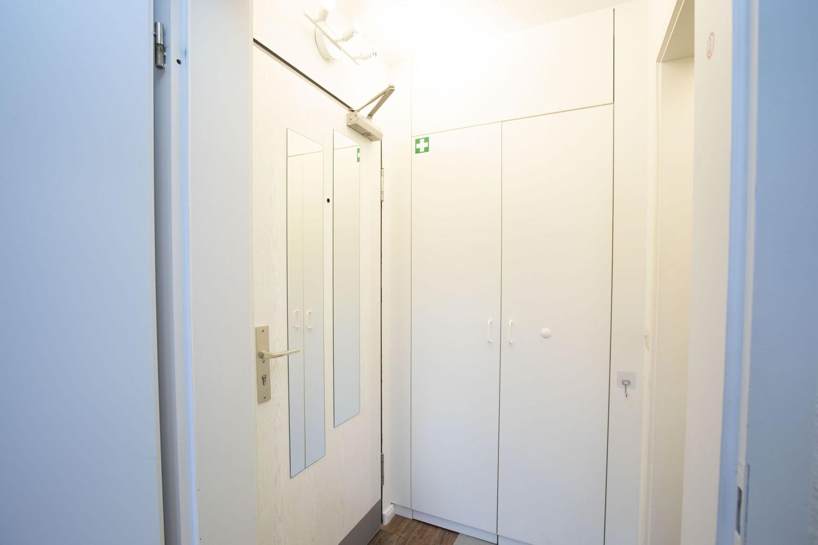 Das Studio-Apartment "Erik" in der Strandresidenz Wassersleben bietet einen überdachten Balkon mit einem beeindruckenden seitlichen Blick auf das Meer und die Flensburger Förde. Die hervorragende Lage, nur 50 Meter vom feinsandigen Strand entfernt, ermöglicht erholsame Stunden im Freien und entspannende Spaziergänge am Wasser. Der großzügige Balkon ist mit einem kleinen Sitz- und Essbereich ausgestattet und eignet sich perfekt für Mahlzeiten unter freiem Himmel oder gemütliche Abende bei Sonnenuntergang. Die Ferienanlage selbst bringt die Vorteile einer gepflegten Außenanlage mit, während Einkaufsmöglichkeiten in nur 150 Metern und Restaurants in 200 Metern erreichbar sind. Zudem steht eine gemeinschaftlich nutzbare Waschmaschinenraumm zur Verfügung. Dieser einzigartige Außenbereich schafft idealen Raum, um die maritime Umgebung und die Natur zu genießen.