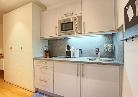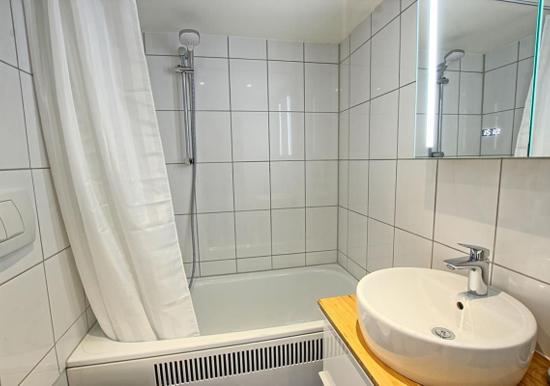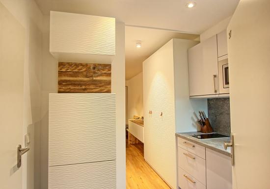 Die rund 36m² Wohnung wurde 2019 frisch renoviert. Vom Eingangsbereich im Flur gelangt man direkt ins hell gestaltete Badezimmer und in den Küchenbereich. Die Küche ist eine sehr hochwertige, nagelneue Nobilia Markenküche mit Siemens-Einbaugeräten inkl. einer Geschirrspülmaschine.