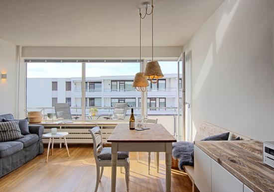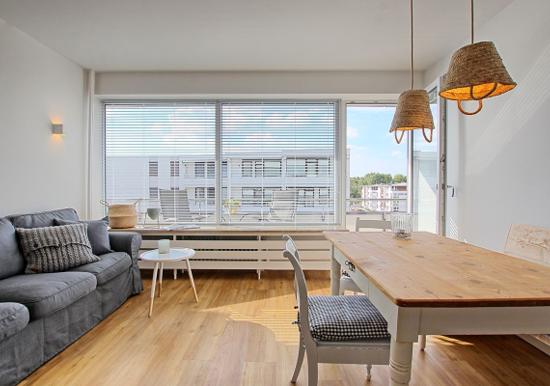 Direkt am Binnensee gelegen, mit eigenem Seezugang und nur wenige Schritte vom Meer entfernt, befindet sich die „Strandbude 33“ im 4. Obergeschoss eines Apartmenthauses. Die Wohnung ist einfach und bequem mit dem Aufzug zu erreichen. Durch die phantastische Lage genießt man zur linken einen traumhaften Blick über den Steinwarder und Ostsee bis hin zur Fehmarnsundbrücke. Zur rechten hat man einen tollen Ausblick über den Binnensee bis zum Hafen. Wasser soweit das Auge reicht…