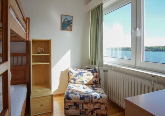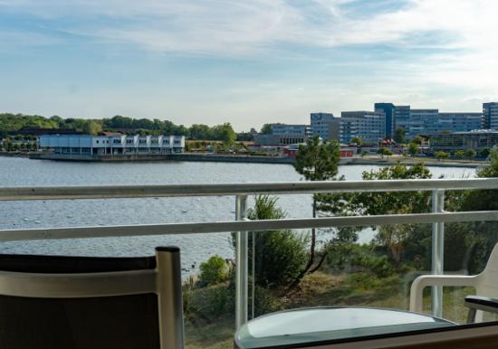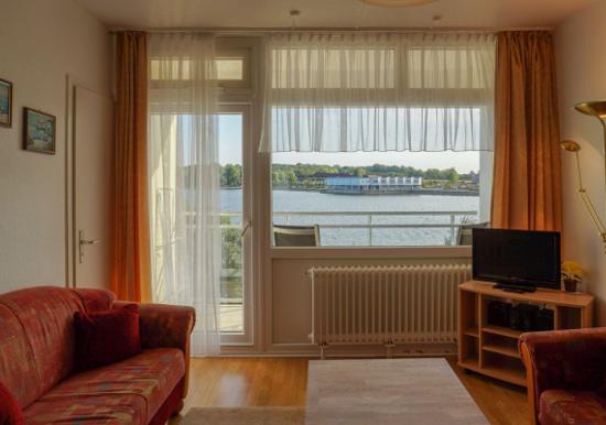 Vom Wohnbereich aus gelangen Sie auf den Südbalkon mit Blick zum Binnensee.