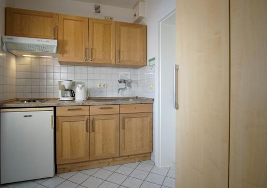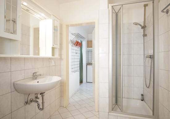 Der offene Küchenbereich ist, für den Urlaubsbedarf, voll ausgestattet. Eine Kaffeemaschine gehört ebenso dazu, wie ein Wasserkocher, Backofen, Geschirrspüler und ein Toaster. Geschirr und Besteck sind ausreichend vorhanden. Das Badezimmer wurde ebenfalls modernisiert und verfügt über eine Dusche mit Glastrennwand.