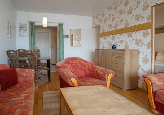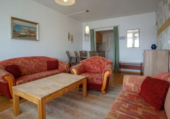 Urlauben Sie auf großzügigen 31m² (2. Etage) im "Strandhotel" auf dem Steinwarder - nur wenige Meter vom Badestrand entfernt. Die zuletzt 2021 modernisierte Ferienwohnung verfügt über einen großen Wohnschlafbereich mit einem gemütlichen Doppelbett, einer Sofaecke und einen Flatscreen-TV. Im angrenzenden Essbereich finden bequem zwei Personen Platz zum Schlemmen.