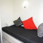Auf der linken Seites des Flures ist eine Schlafnische mit einer Schlafcouch, welche für max. 2 Personen Platz bietet und durch eine Schiebegardinen zum Flur abgetrennt werden kann.