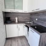 Die offene, neue Küchenzeile verfügt über ein 4er Ceranfeld, Geschirrspüler, Kühlschrank mit Gefrierfach, Wasserkocher und einem Toaster.
