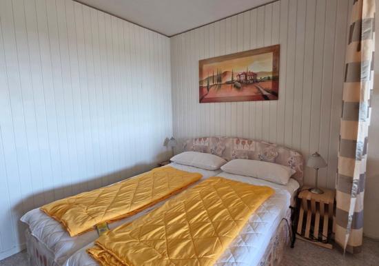 Schlafbereich mit zwei Einzelbetten (90x200cm), welche zusammenstellbar sind (bitte wieder zurückstellen bei Abreise) und mit Vorhang zum Wohnraum abtrennbar.