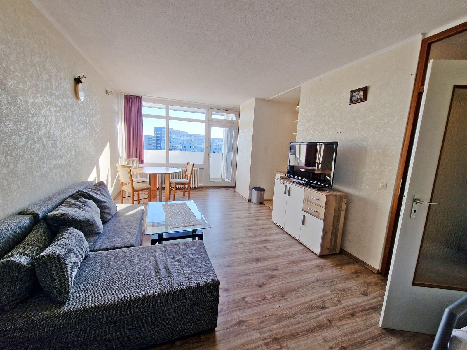 Die Ferienwohnung bietet eine komfortable und durchdachte Ausstattung, die jedem Aufenthalt gerecht wird. Sie verfügt über ein Schlafzimmer mit vier Einzelbetten, sodass eine flexible Nutzung gewährleistet ist. Das moderne Badezimmer ist mit einer Dusche ausgestattet und sorgt für wohlverdiente Entspannung. Im lichtdurchfluteten Wohnschlafzimmer lädt ein Sofa sowie ein Sessel zum Entspannen ein. Eine Küchenzeile mit Elektro-/Gasherd, Mikrowelle und Kühlschrank ermöglicht die Zubereitung eigener Mahlzeiten. Dazu gehören auch eine Kaffeemaschine, ein Wasserkocher sowie Geschirr und Besteck. Für Unterhaltung sorgt der TV. Das WLAN-Internet sorgt für Konnektivität, während ein eigener Parkplatz und der Fahrstuhl zusätzlichen Komfort bieten. Stauraum ist in Form von Schränken und Kommoden vorhanden, und eine Garderobe rundet das Angebot ab. Ideal für einen entspannten Aufenthalt in angenehmer Umgebung.