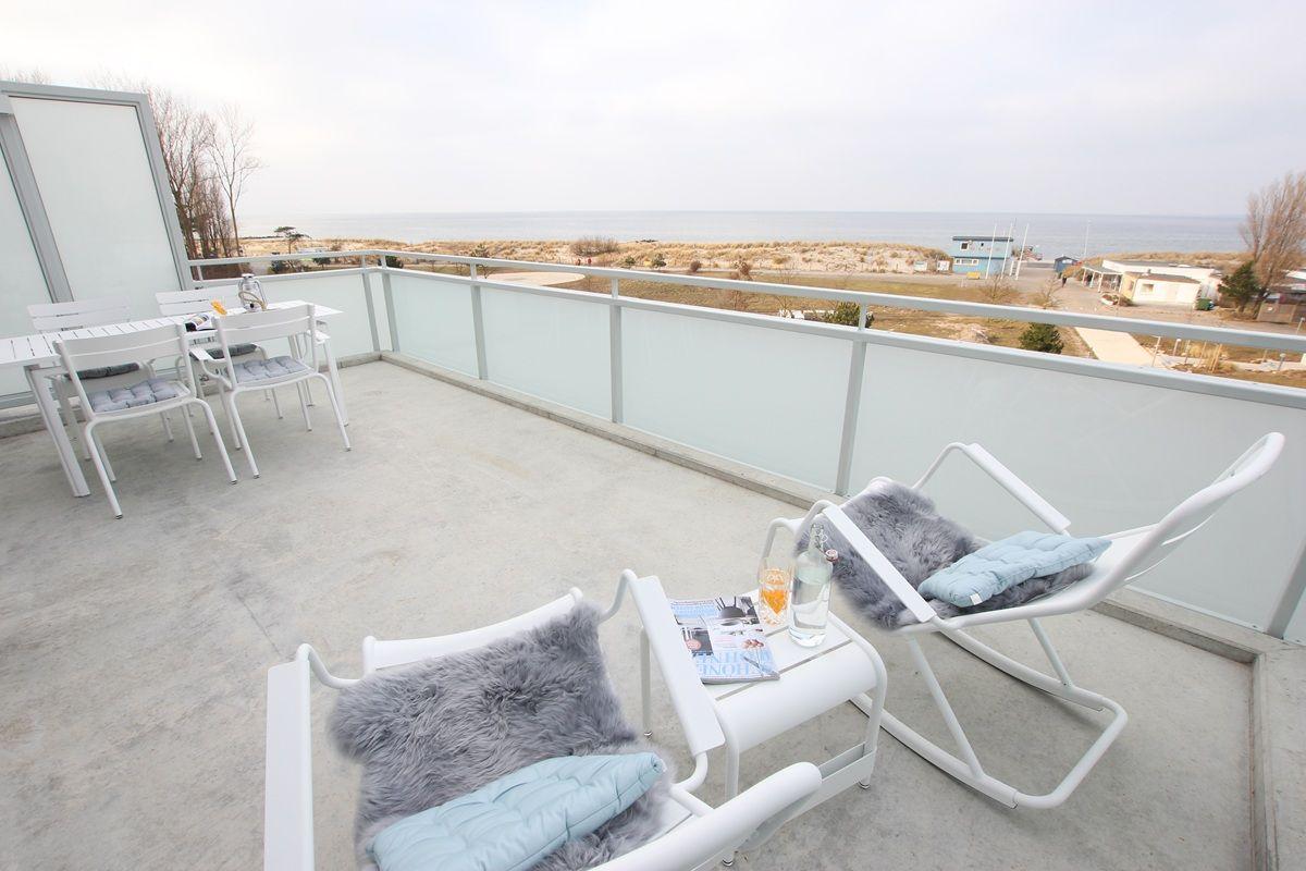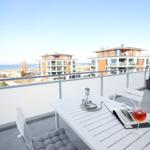Die Ferienwohnung liegt in der 3ten Etage und ist mit dem Aufzug bequem zu erreichen. Sie verfügt über einen großen, offenen Wohn-/Schlafbereich mit rund 50 m², ein geräumiges Bad mit Rainshowerdusche, Fußbodenheizung, vielen Ablagemöglichkeiten und Föhn sowie einen ca. 18 m² großen Balkon mit einem atemberaubenden Ausblick auf die Ostsee.