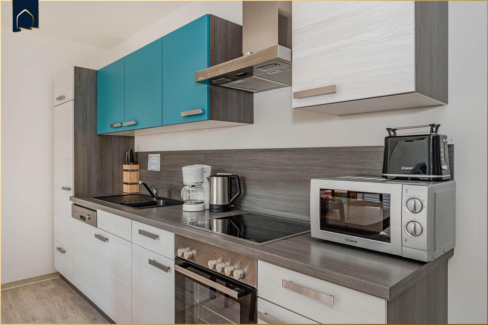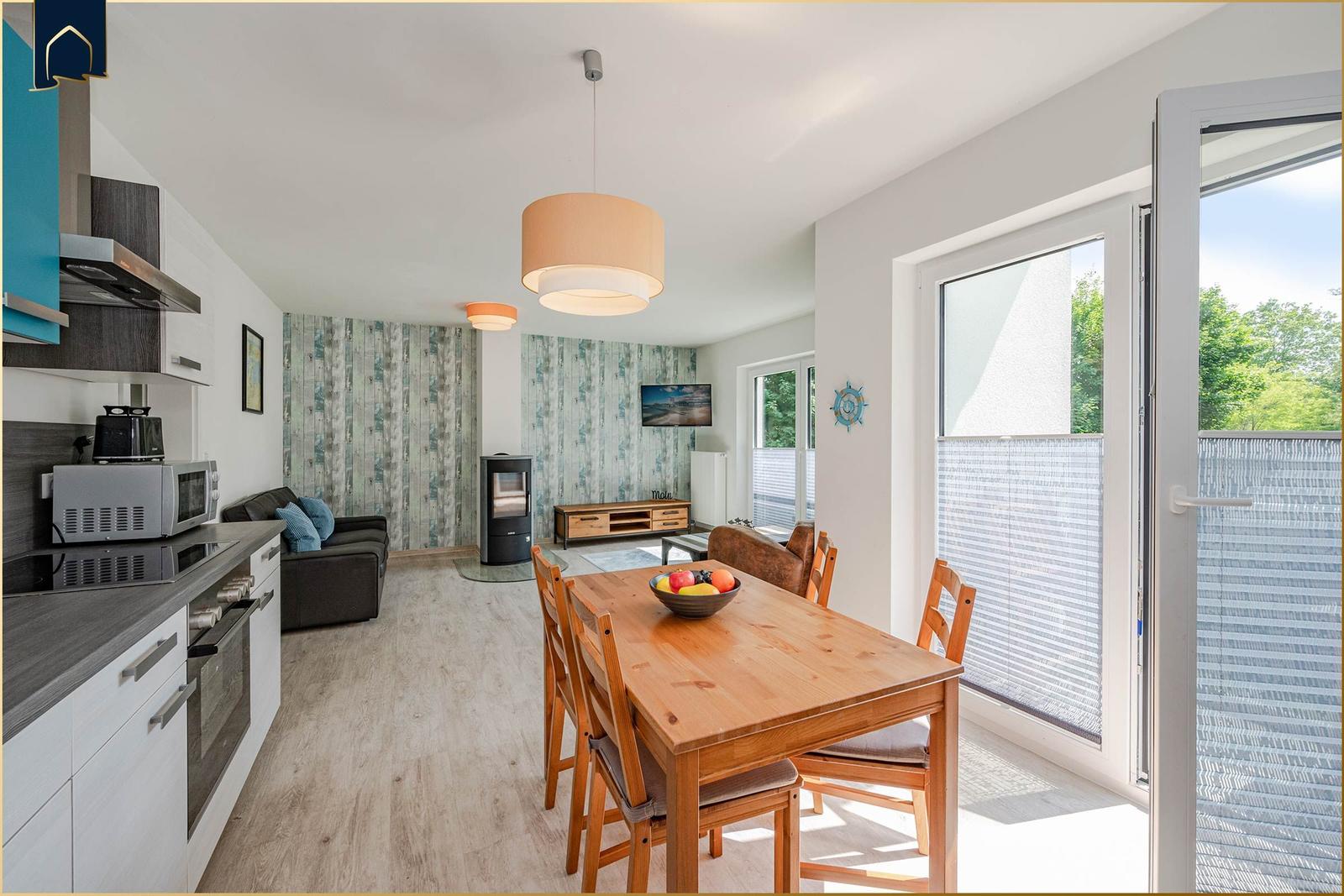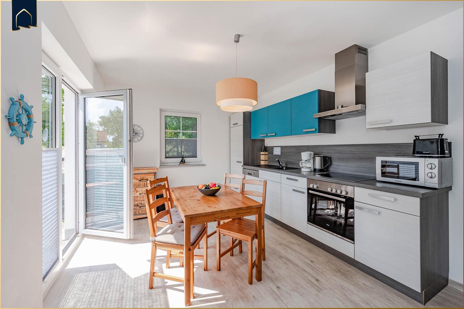 Die Ferienwohnung bietet eine komfortable und allergikergeeignete Umgebung, ideal für einen entspannten Aufenthalt. Sie verfügt über zwei Schlafzimmer, die Ruhe und Erholung garantieren. Die offene Küche ist modern ausgestattet mit einem Geschirrspüler, Elektro- und Gasherd, Mikrowelle, Kühlschrank, Kaffeemaschine, Toaster und Gefriermöglichkeit – alles, was für eine Selbstversorgung benötigt wird.