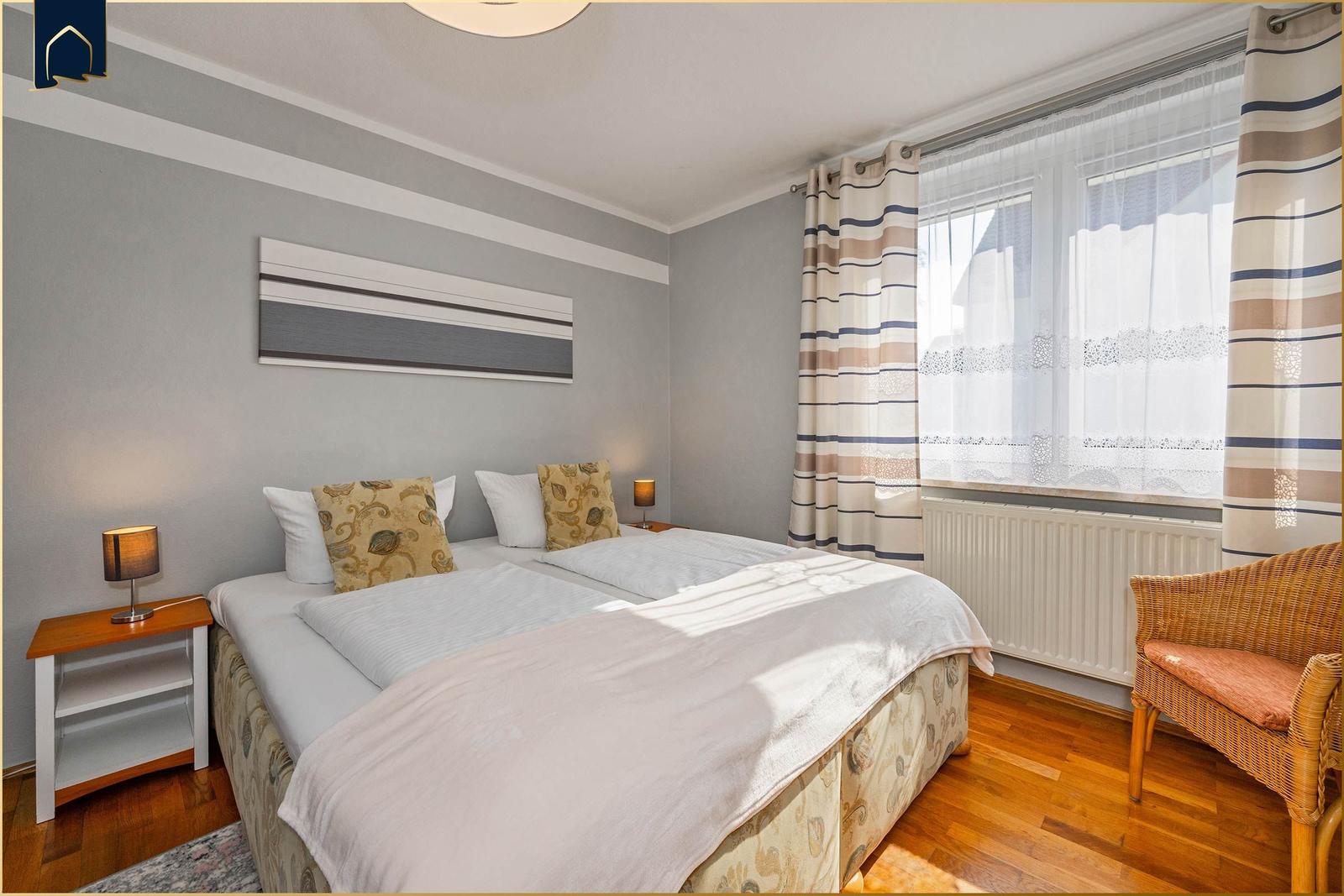 Die Ferienwohnung bietet umfangreiche Annehmlichkeiten für einen komfortablen Aufenthalt. Sie umfasst zwei Schlafzimmer, darunter ein Doppelbett und eine Schlafcouch im Wohnschlafzimmer, ideal für Familien oder Gruppen. Die moderne Küche ist mit einem Geschirrspüler, Elektro- und Gasherd, einem Backofen, einer Mikrowelle, einem Kühlschrank, einer Kaffeemaschine, einem Toaster und einem Wasserkocher ausgestattet. Das Badezimmer mit Fenster bietet ein Duschbad, einen Haartrockner sowie Spiegel und Schrank für persönlichen Bedarf. Im Wohnbereich sorgt ein Sofa für Entspannung, während ein Esstisch Platz für gesellige Abende bietet. WLAN-Internet ist verfügbar, und die Wohnung ist allergikergeeignet. Ein Parkplatz gehört ebenfalls zur Ausstattung. Rauchmelder, Staubsauger und Wäscheständer runden das Angebot ab. Fliegengitter sorgen für eine angenehme Atmosphäre ohne lästige Insekten.