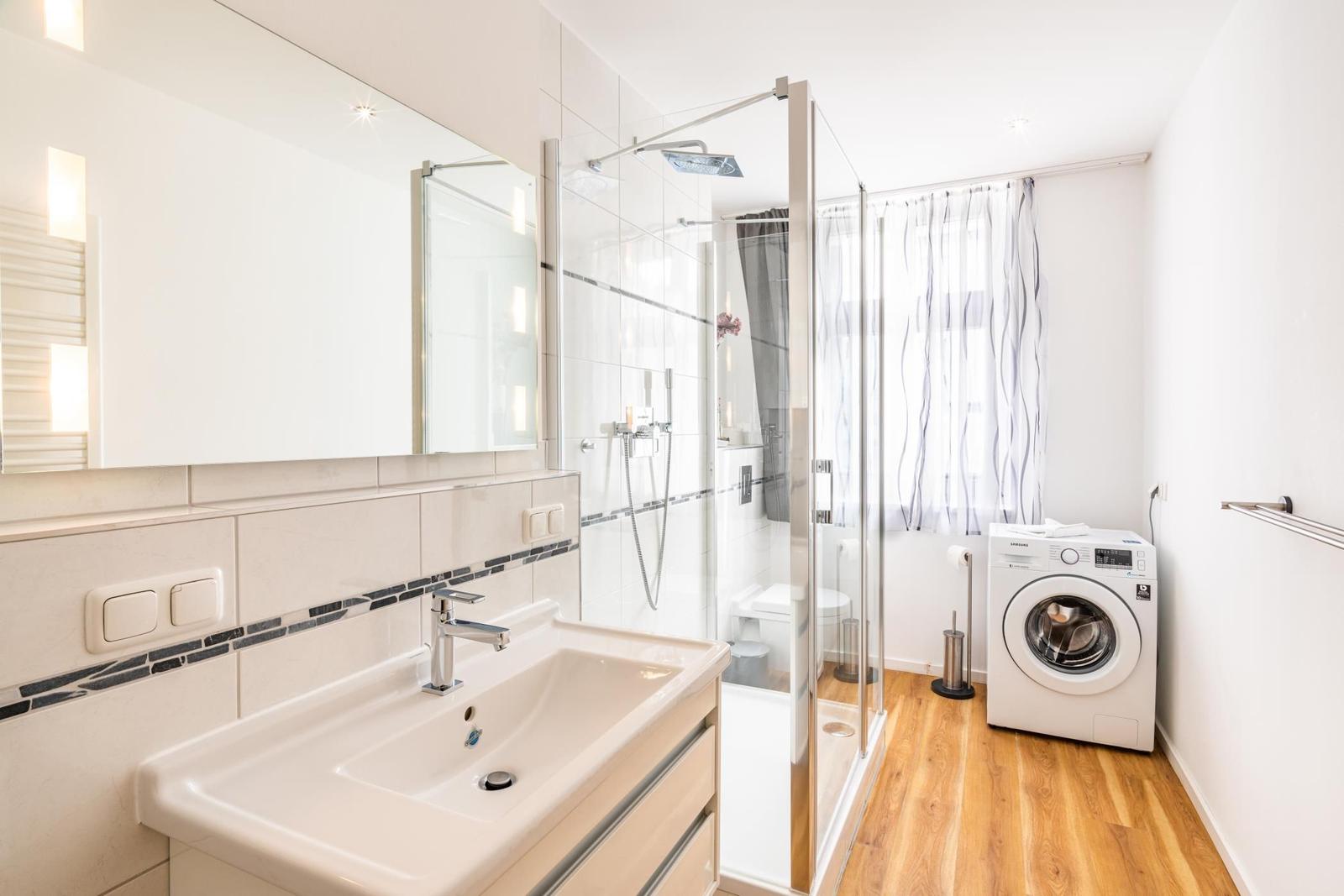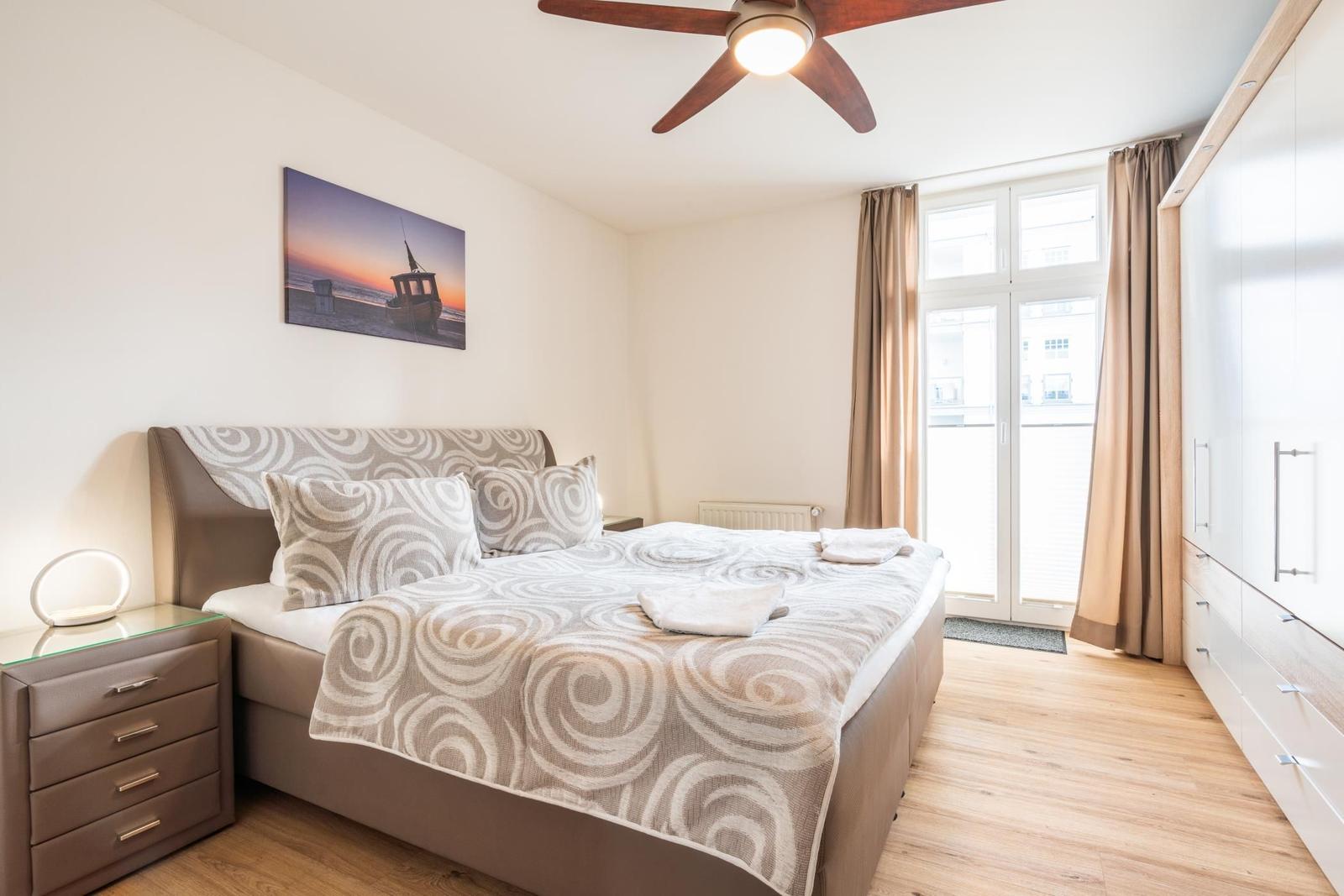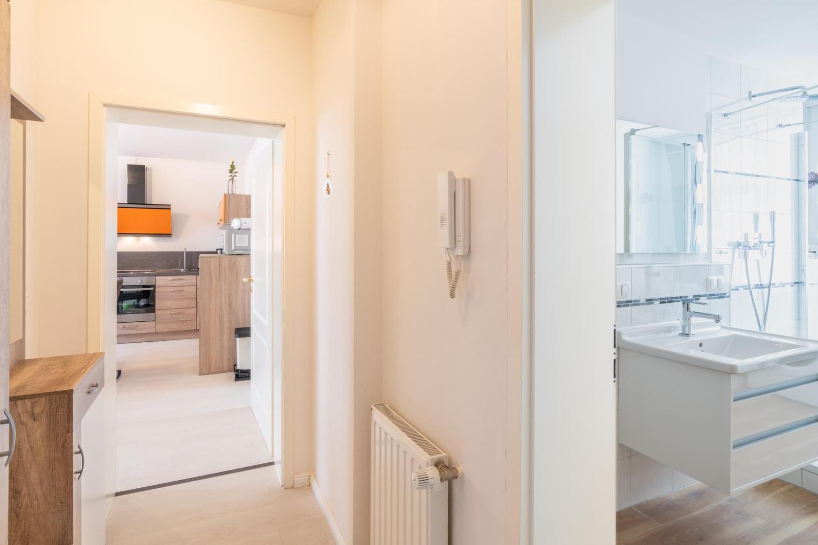 Die Ferienwohnung in Heringsdorf besticht durch ihren einladenden Außenbereich. Direkt vom Wohnzimmer aus gelangen die Gäste zu einer großzügigen Terrasse, die ideal für gemeinsame Momente im Freien ist. Hier können sie das angenehme Klima genießen, sei es beim Frühstück unter freiem Himmel oder bei einem entspannten Abendessen. Zudem bietet ein kleiner Balkon Zugang vom Schlafzimmer, perfekt, um die frische Meeresluft und den Sonnenuntergang zu erleben. Diese Rückzugsorte laden dazu ein, die Schönheit der Umgebung in vollen Zügen zu genießen. Obwohl der Außenbereich gemeinschaftlich nutzbar ist, schaffen diese kleinen Oasen eine entspannte Atmosphäre, die zum Verweilen einlädt. In der zweiten Reihe vom Strand gelegen, ist die Ferienwohnung ein idealer Rückzugsort für die ganze Familie.