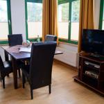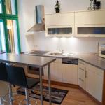 Herzstück der Ferienwohnung ist die verglaste Veranda, die gleichermaßen als Essplatz und Wohnzimmer dient. Vielleicht etwas ungewöhnlich, aber durchaus praktisch: ein Tresen trennt den Schlafbereich von der komplett ausgestatteten Einbauküche, die keine Wünsche offen lässt: Geschirrspülmaschine, Backofen, Mikrowelle, Kühlschrank - alles da, was der Hobbykoch im Urlaub benötigt. Den ersten Kaffee am Morgen genießt man am besten am schönen Tresen oder gerne auch in der Veranda.