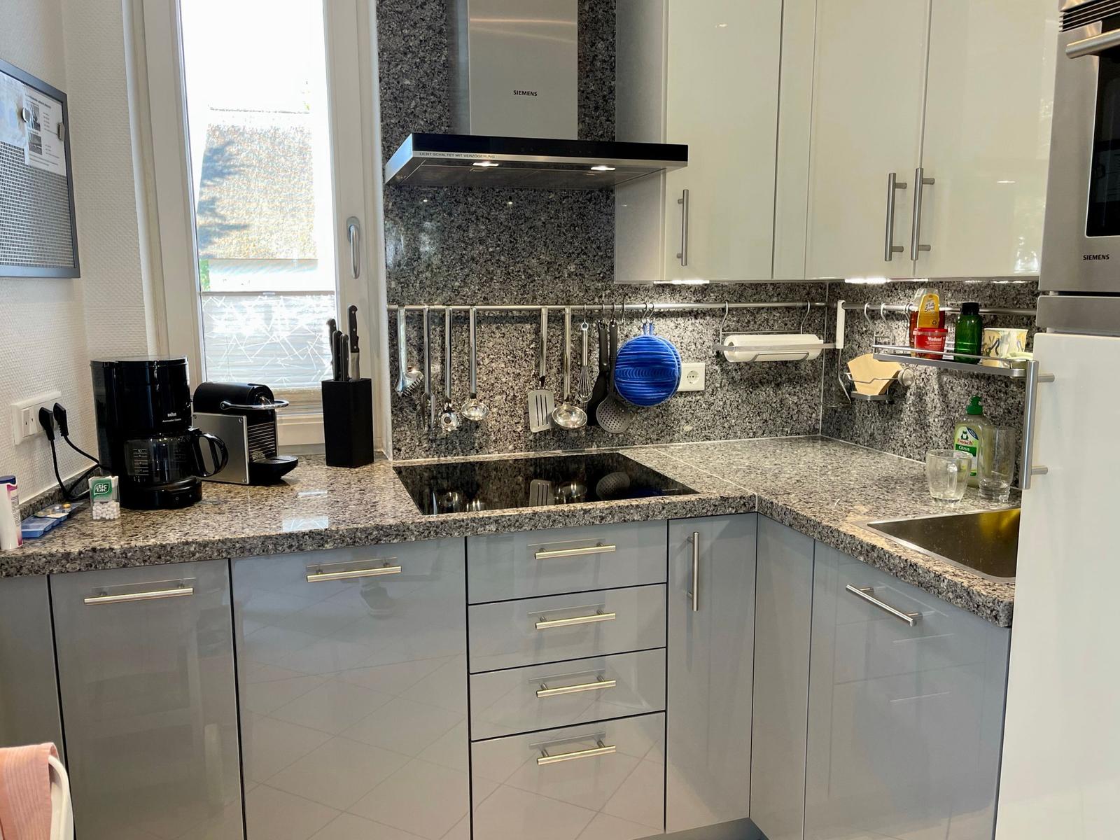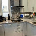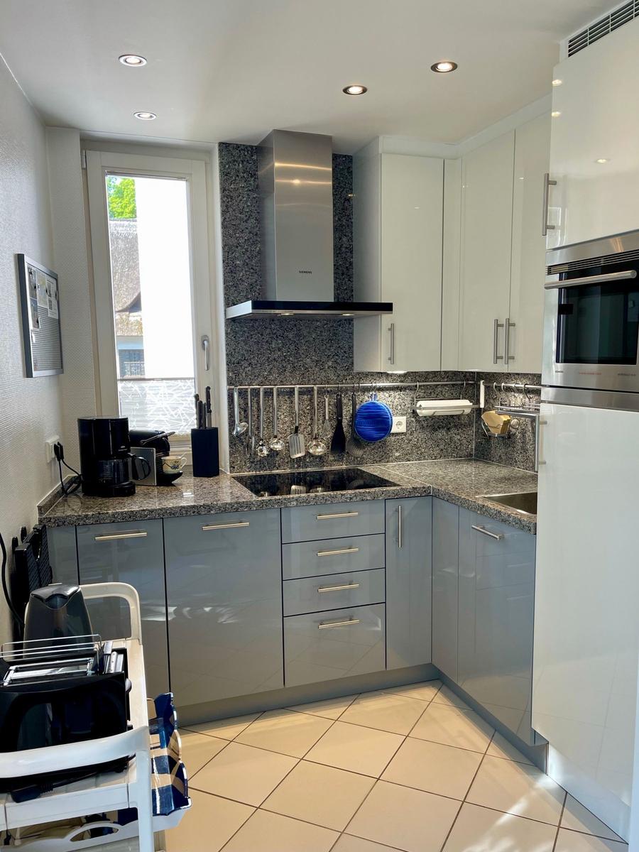Die offene Küche ist mit allem Notwendigen ausgestattet, darunter ein Geschirrspüler, Elektro-/Gasherd, Backofen, Mikrowelle, Kühlschrank und eine Kaffeemaschine. Der Esstisch lädt zu gemeinsamen Mahlzeiten ein. Die Wohnung ist allergikergeeignet und bietet mit einer HiFi-Anlage, TV und DVD-/Blu-ray-Player zahlreiche Unterhaltungsmöglichkeiten.