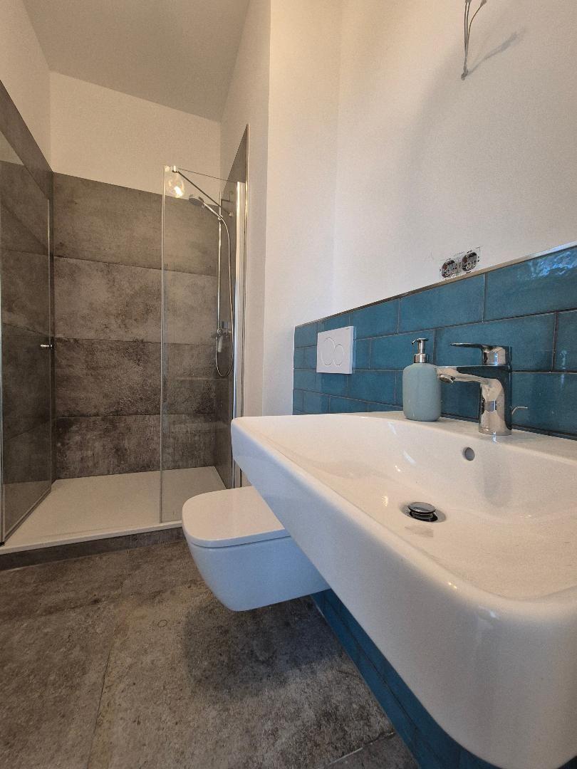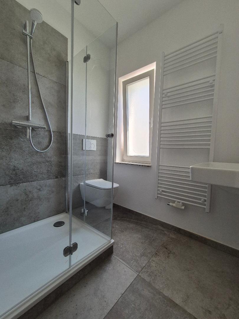 Die 2 Tageslicht-Badezimmer sind mit großzügigen flachen Duschen in den Maßen 100x120 cm bzw. 90x90 cm ausgestattet.