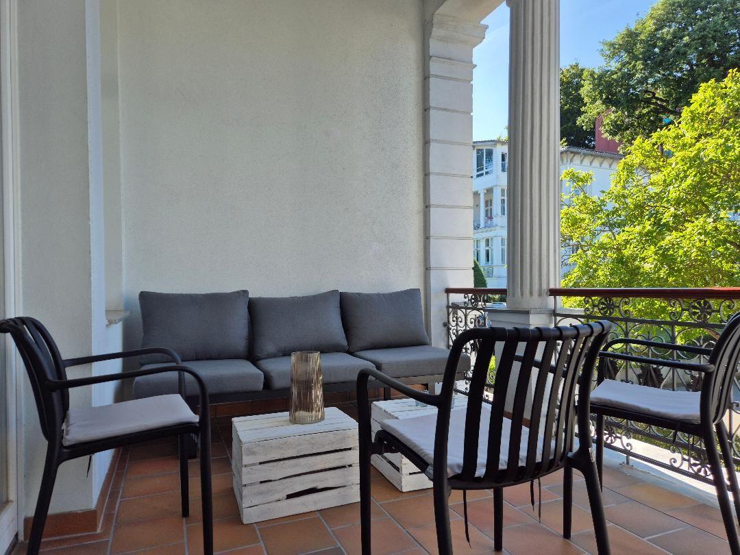 In der Beletage einer denkmalgeschützten Bäderstilvilla gelegen, empfängt die Ferienwohnung Luise bis zu 6 Gäste + Baby mit besonderem Charme: Böden mit massivem Fischgrät-Parkett, hohe Decken, offene Säulenloggia, hochwertige Einrichtung und moderne Bäder. Die Wohnung wurde in 2025 vollständig saniert und neu eingerichtet.
