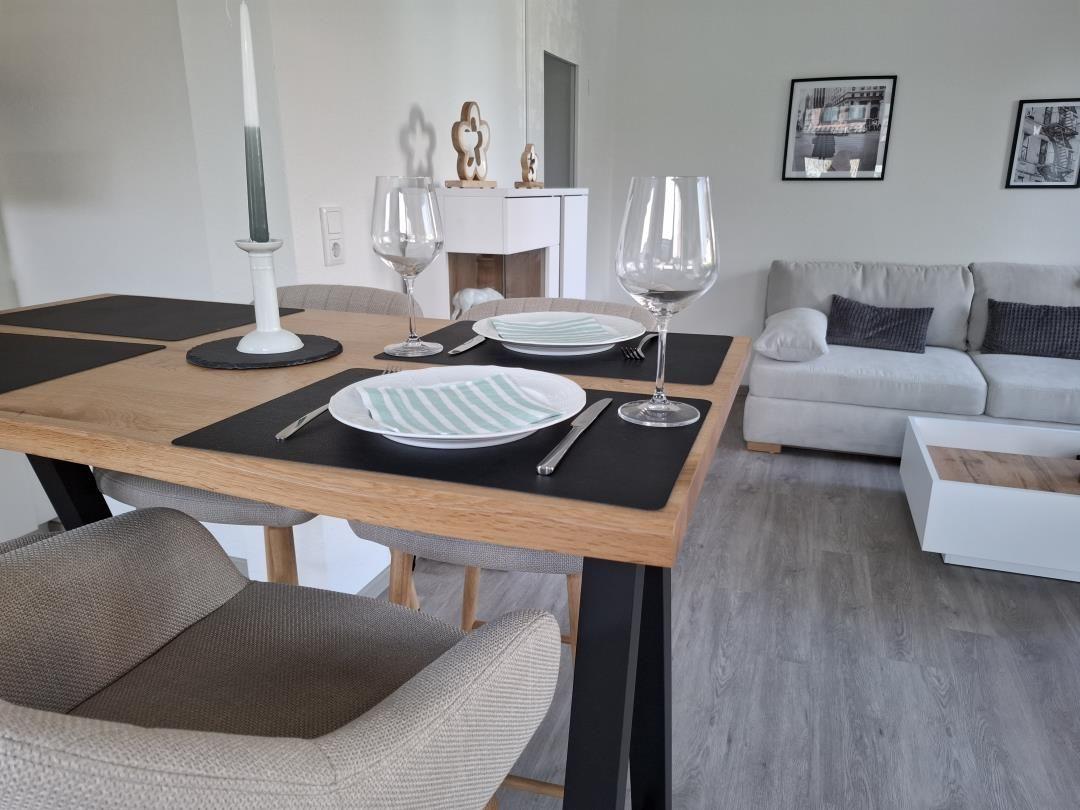 Die Wohnung „Kleine Auszeit“ liegt ideal, um Höxter und seine Umgebung – etwa das Kulturerbe Corvey – zu Fuß oder mit dem Fahrrad zu erkunden. Die historische Altstadt von Höxter mit ihren charmanten Fachwerkhäusern, der Weserpromenade und den zahlreichen Sehenswürdigkeiten ist in nur 15 Minuten bequem zu Fuß erreichbar. Die rund 60 Quadratmeter große, frisch renovierte Wohnung bietet eine offene Küche, ein gemütliches Wohnzimmer, ein separates Schlafzimmer sowie einen Balkon mit Tisch und Stühlen. Zur Ausstattung gehören zudem ein Fön, eine Kaffeemaschine, ein Toaster, ein Wasserkocher, ein Flachbildfernseher und kostenloses WLAN. Die stilvoll eingerichtete Wohnung ist der perfekte Ort für einen entspannten und unabhängigen Aufenthalt. Ob Sie die Stadt erkunden oder einfach eine kleine Auszeit vom Alltag genießen möchten – hier finden Sie den passenden Rahmen dafür. Der Wohnbereich lädt mit einem bequemen Sofa und Sesseln zum Verweilen ein. Ob zum Lesen, Fernsehen oder einfach zum Entspannen: Hier können Sie zur Ruhe kommen. Der Flachbildfernseher sorgt für Unterhaltung, das kostenfreie WLAN für eine stabile Internetverbindung. Die moderne, offene Küche ist voll ausgestattet und bietet alles, was Sie für die Zubereitung Ihrer Mahlzeiten benötigen – einschließlich Kaffeemaschine, Toaster und Wasserkocher. Das separate Schlafzimmer dient als ruhiger Rückzugsort und verfügt über ein komfortables Bett, das erholsamen Schlaf garantiert. Das Badezimmer ist modern gestaltet und mit einem Fön ausgestattet, sodass Sie sich nach dem Duschen bequem stylen können. Abgerundet wird das Angebot durch einen Balkon, der dazu einlädt, die frische Luft zu genießen. Bettwäsche und Hnadtücher sind im Preis enthalten.