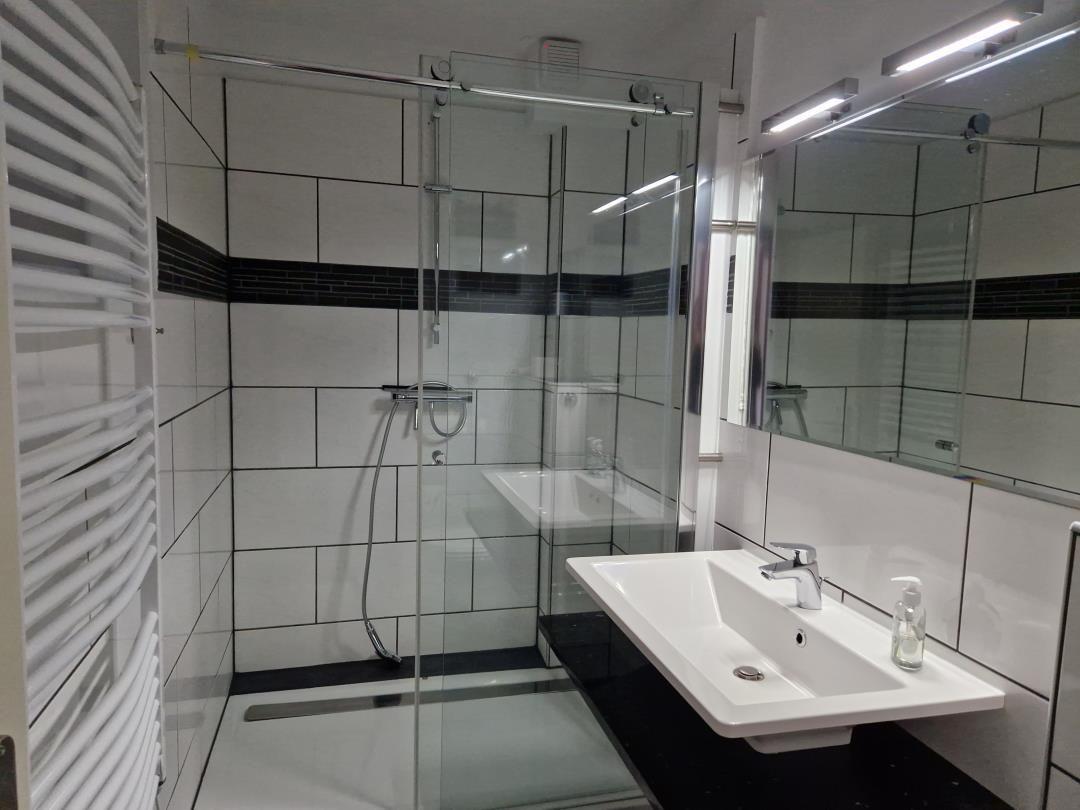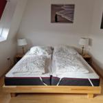 Die Ferienwohnung überzeugt durch ihre großzügige Raumgestaltung und moderne Ausstattung. Sie verfügt über zwei komfortable Schlafzimmer mit insgesamt vier Doppelbetten, ideal für Familien oder Gruppen. Die separate Küche ist mit einem Geschirrspüler, Elektro-/Gasherd, Backofen, Mikrowelle, Kühlschrank, Kaffeemaschine, Wasserkocher, Toaster und Gefriermöglichkeiten ausgestattet und lädt zum Kochen ein. Ein Esstisch bietet ausreichend Platz für gemeinsame Mahlzeiten. Das Badezimmer mit Dusche und das Gäste-WC gewährleisten zusätzlichen Komfort.