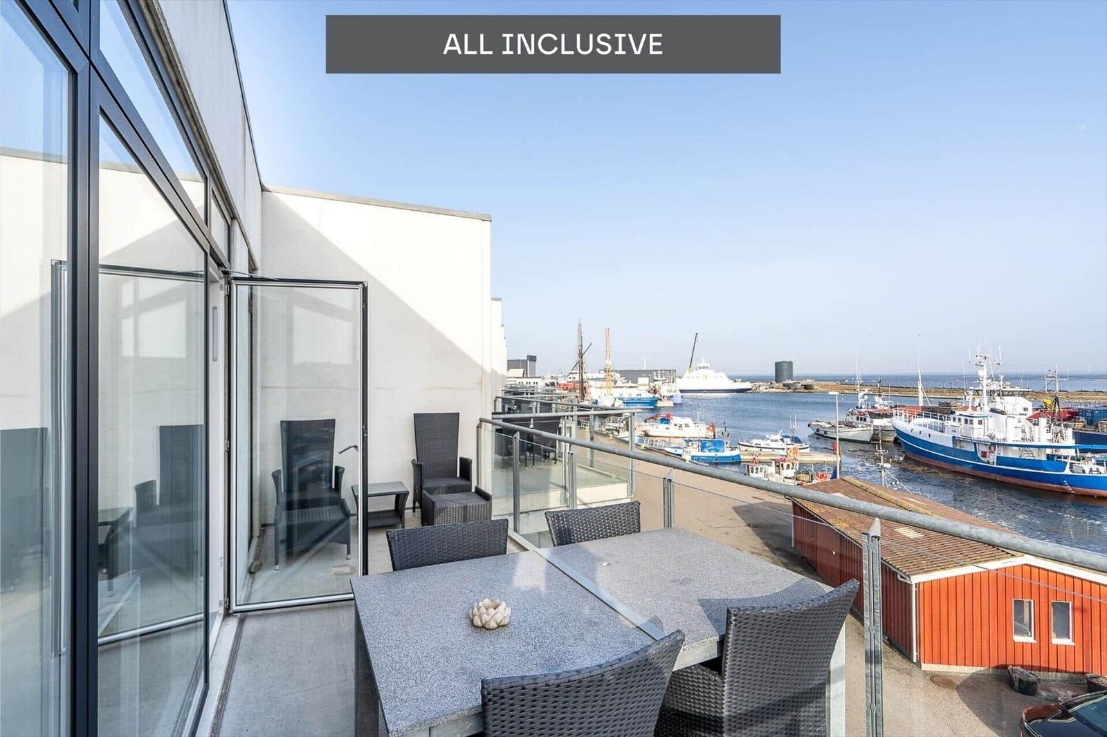 Diese attraktive Ferienwohnung bietet eine moderne Ausstattung und erstklassigen Komfort. Sie besteht aus zwei einladenden Schlafräumen – einem mit Doppelbett und einem mit zwei Einzelbetten – sowie einem stilvollen Wohnschlafzimmer, das durch große Fenster lichtdurchflutet ist. Die offene Küche ist mit Geschirrspüler, Backofen, Mikrowelle, Kühlschrank (120 L/80 L) und einer Kaffeemaschine ausgestattet und lädt zur Zubereitung köstlicher Urlaubsmahlzeiten ein. Ein Duschbad mit Fußbodenheizung, Waschmaschine und Wäschetrockner sorgt für zusätzlichen Komfort. Unterhaltung wird durch einen Flachbild-TV mit einem umfangreichen Senderangebot garantiert. WLAN ist ebenfalls vorhanden. Auf dem schönen Balkon mit Panoramaaussicht über den Ringkøbing Fjord und Hafen können entspannte Stunden genossen werden. Ein Fahrstuhl erleichtert den Zugang. Ideal gelegen, bietet die Wohnung Nähe zu Geschäften und Restaurants, sowie zur Nordsee und herrlichen Stränden.
