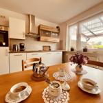 Die gemütliche Ferienwohnung bietet ein einladendes Ambiente mit einem optimalen Raumangebot. Ein separates Schlafzimmer mit zwei Doppelbetten sorgt für erholsame Nächte. Die separate Küche ist vollständig ausgestattet und verfügt über einen Geschirrspüler, Elektro-/Gasherd, Backofen, Mikrowelle, Kühlschrank, Kaffeemaschine, Toaster und Gefriermöglichkeit, wodurch das Kochen zum Vergnügen wird. Das moderne Duschbad ist ideal für entspannende Momente und das zusätzliche Gäste-WC bietet praktischen Komfort. Zur Unterhaltung stehen ein TV und kostenloses WLAN zur Verfügung. Die Wohnung ist zudem mit einer Heizung, einem Haartrockner und einem Staubsauger ausgestattet. Ein privater Eingang sorgt für Unabhängigkeit, während der Parkplatz vor der Tür das Ankommen erleichtert. Fliegengitter und Rauchmelder gewährleisten Sicherheit und Komfort. Ein Esstisch lädt zu gemeinsamen Mahlzeiten ein und vollendet das Angebot dieser ansprechenden Ferienunterkunft.