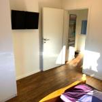 Die Ferienwohnung bietet eine moderne und komfortable Ausstattung, ideal für erholsame Tage. Im Schlafzimmer befindet sich ein Doppelbett, während das Wohnschlafzimmer mit einer Schlafcouch zusätzlichen Platz zum Entspannen bietet. Die offene Küche ist vollständig ausgestattet und verfügt über einen Elektro-/Gasherd, Backofen, Kühlschrank, Kaffeemaschine, Wasserkocher, Toaster und Gefriermöglichkeiten. Der Esstisch lädt zu gemeinsamen Mahlzeiten ein. Das Badezimmer mit Fenster bietet eine bodengleiche Dusche, einen Haartrockner und einen Spiegel. WLAN sorgt für einen nahtlosen Internetzugang. Die Wohnung ist allergikergeeignet und bietet eine angenehme Raumatmosphäre mit Heizung, Garderobe und Rauchmelder. Ein Parkplatz ist ebenfalls vorhanden. Der Staubsauger und das Erste-Hilfe-Set runden das Angebot ab und garantieren einen komfortablen Aufenthalt.