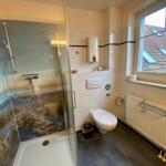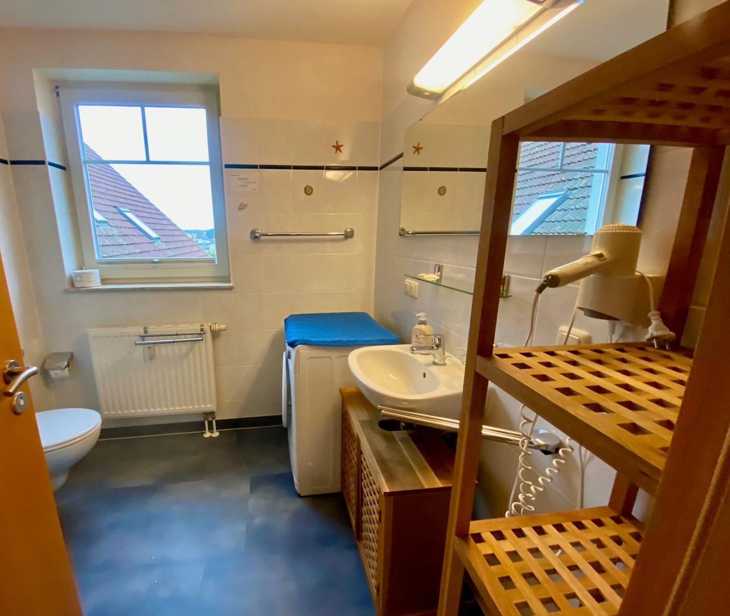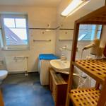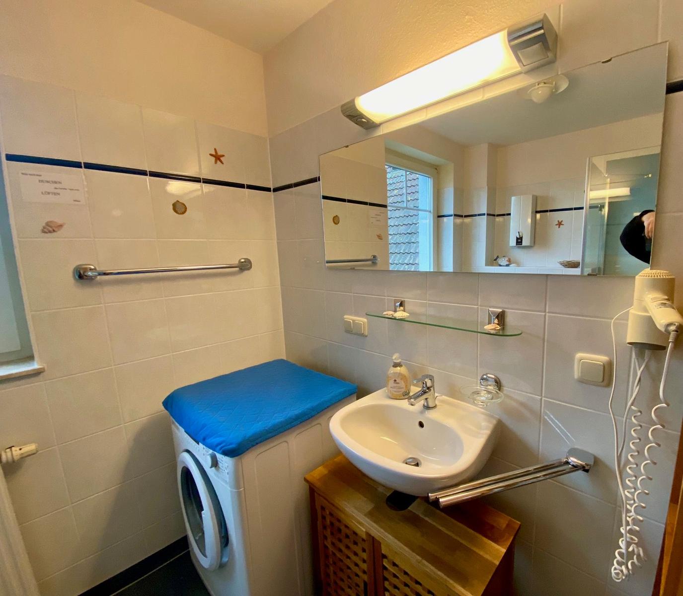 Das Badezimmer lässt keine Wünsche offen. Hier finden Sie alles, was Sie zum Wohlfühlen und für Ihre tägliche Pflege benötigen. Ein Föhn, ein WC, eine Dusche und ein großer Spiegel stehen Ihnen zur Verfügung. Zahlreiche Ablagemöglichkeiten bieten ausreichend Platz für Ihre persönlichen Dinge. Darüber hinaus ist eine Waschmaschine vorhanden, die es Ihnen ermöglicht, auch bei längeren Aufenthalten Wäsche zu waschen – ganz bequem!