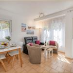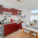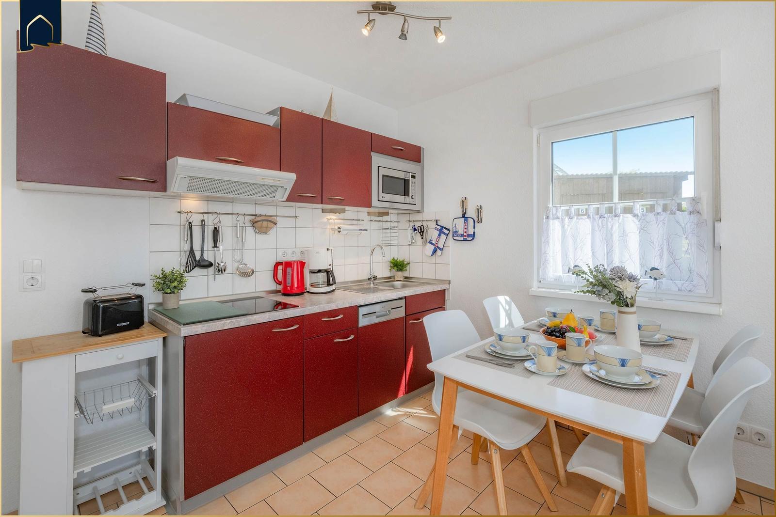 Die Ferienwohnung bietet ein modernes und komfortables Ambiente. Sie verfügt über zwei Schlafzimmer, die zum Entspannen einladen, sowie ein helles Badezimmer mit bodengleicher Dusche und Fenster. Die offene Küche ist vollständig ausgestattet mit einem Geschirrspüler, Elektro-/Gasherd, Mikrowelle, Kühlschrank, Kaffeemaschine und Toaster, um kulinarische Köstlichkeiten zu zaubern. Ein Esstisch ermöglicht gesellige Mahlzeiten. Das Wohnzimmer mit Kamin oder Kachelofen schafft eine gemütliche Atmosphäre und ist mit einem TV und einer HiFi-Anlage ausgestattet. Die Wohnung ist allergikergeeignet und bietet zahlreiche Annehmlichkeiten wie WLAN, einen Parkplatz, Waschmaschine und Kinderspielzeug. Kindersicherungen an Steckdosen und ein Rauchmelder sorgen für zusätzliche Sicherheit. Für entspannende Momente im Freien steht ein Sonnenschirm zur Verfügung. Diese Ferienwohnung ist der ideale Rückzugsort für alle, die Komfort und Stil schätzen.