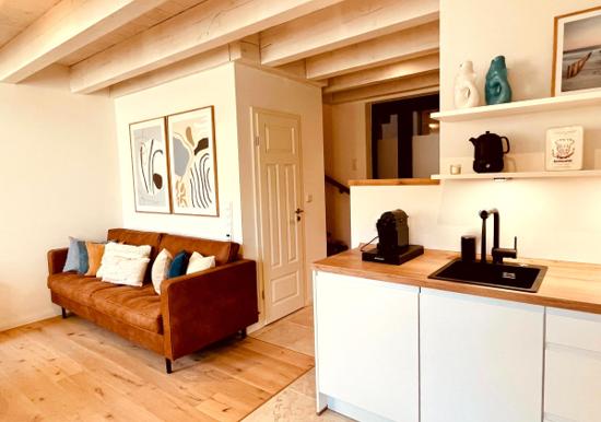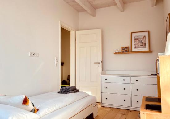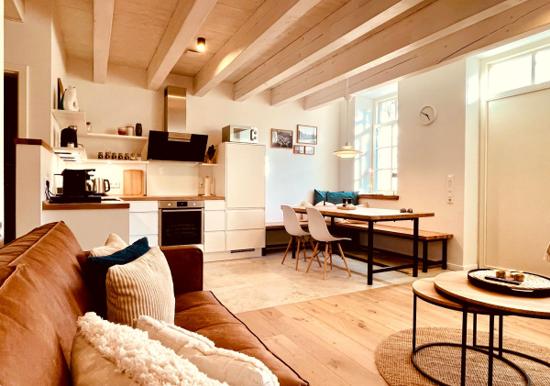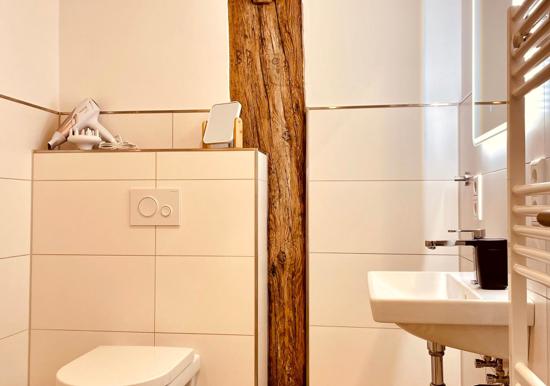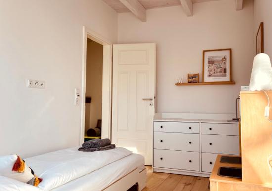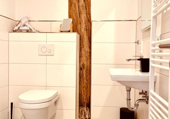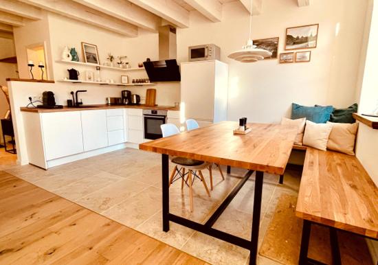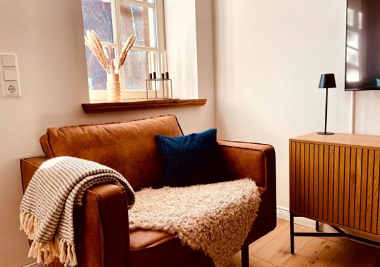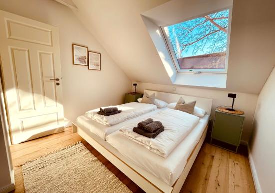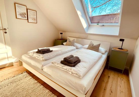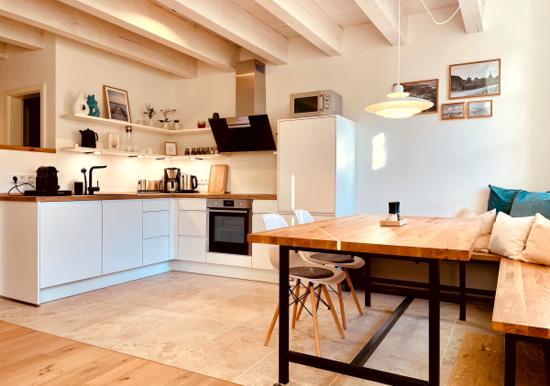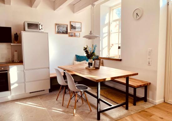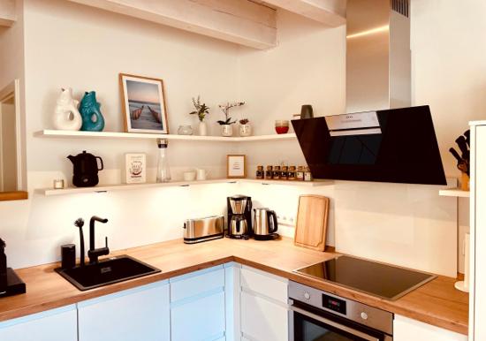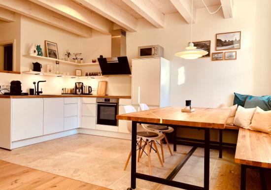 Die Ferienwohnung 6 „Anton“ bietet einen einladenden Außenbereich mit einer großzügigen, sonnenbeschienenen Terrasse, die ideal für Frühstück unter freiem Himmel oder abendliche Grillabende ist. Ein Grill steht bereit, um den Aufenthalt zu bereichern, während ein Sonnenschirm für schattige Rückzugsmöglichkeiten sorgt. Die Wiese vor der Terrasse ist ein schöner Platz für Kinder, um zu spielen und sich auszutoben. Der Außenbereich ist gemeinschaftlich nutzbar, was zusätzliche Gelegenheiten zum Austausch mit anderen Gästen schafft. Ein sicherer Parkplatz mit E-Ladesäule für Elektroautos sowie ein abschließbarer Abstellraum für Fahrräder sind ebenfalls vorhanden, um den Aufenthalt bequem zu gestalten. So wird der Aufenthalt in der Ferienwohnung 6 „Anton“ zu einem harmonischen Erlebnis in der idyllischen ostfriesischen Landschaft.