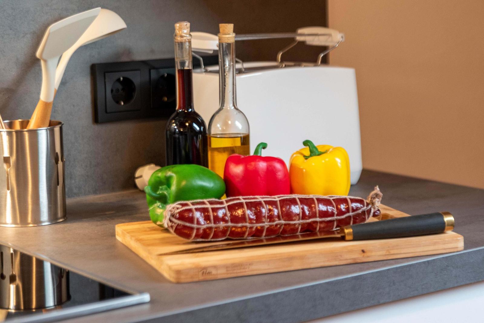 Besucher können an sonnigen Tagen die Außenmobiliarausstattung nutzen, die einen komfortablen Rückzugsort im Freien bietet. Für angenehme Abende steht auch ein Grillplatz bereit, an dem schöne gemeinschaftliche Momenten entstehen können.