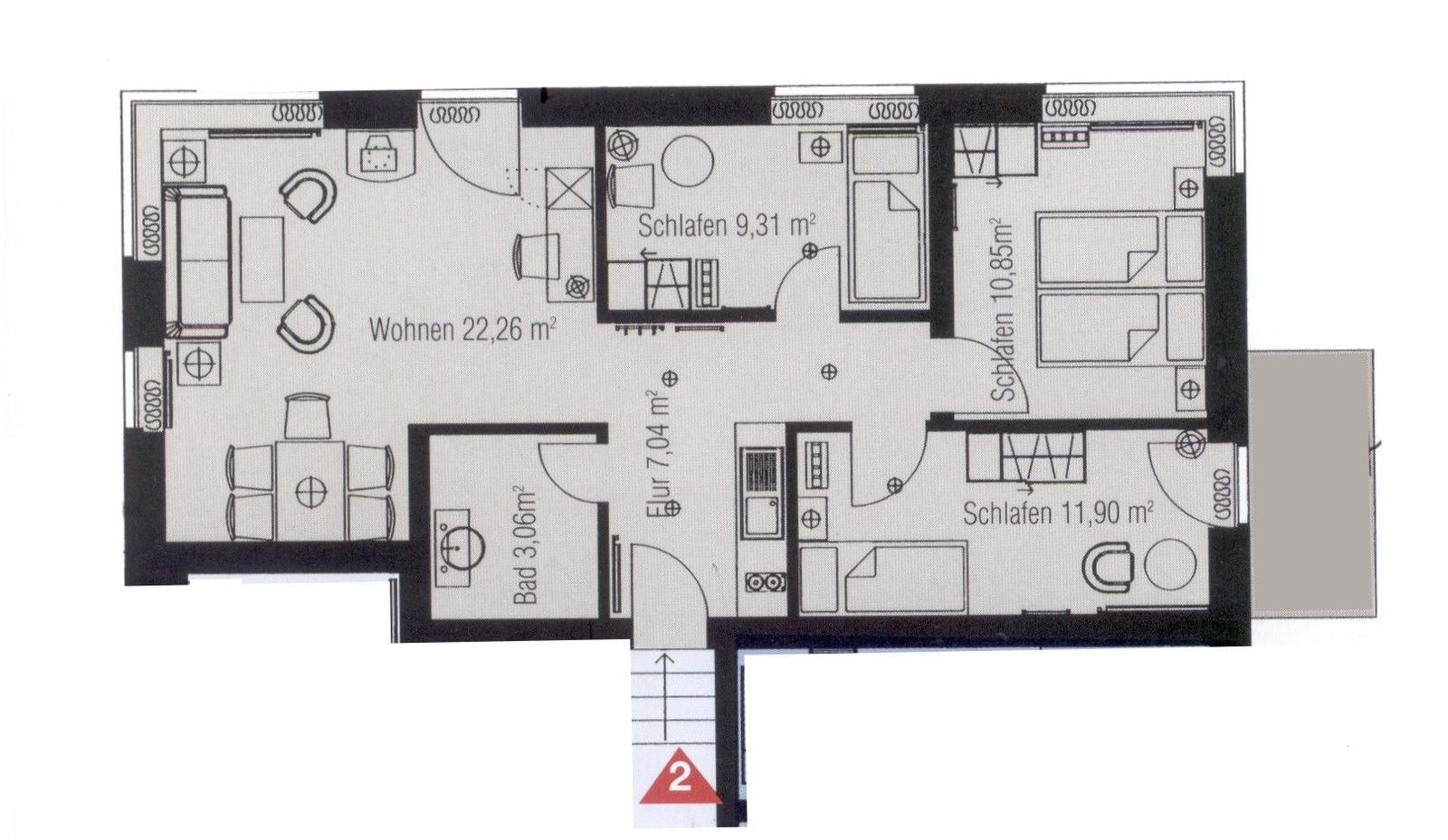 Die 4-Zimmer-Wohnung befindet sich im Erdgeschoss zur sonnigen Süd-/Westseite.